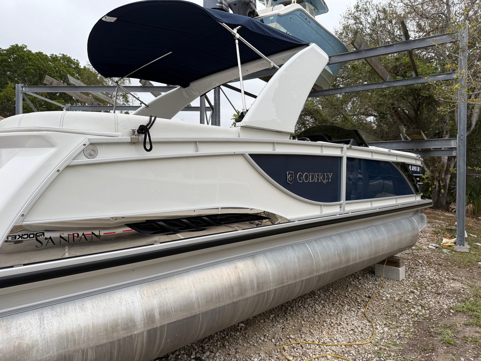 At the heart of the Godfrey SP 2500 SBC is a robust single engine delivering an impressive 300 horsepower. With only 129 engine hours, this pontoon boat promises reliability and plenty of life left for countless adventures. The powerful engine ensures smooth acceleration, responsive handling, and the ability to cruise effortlessly across lakes, rivers, or coastal waters. Whether you are towing water toys, heading out for a day of fishing, or simply enjoying a leisurely cruise, the performance of this pontoon will not disappoint.