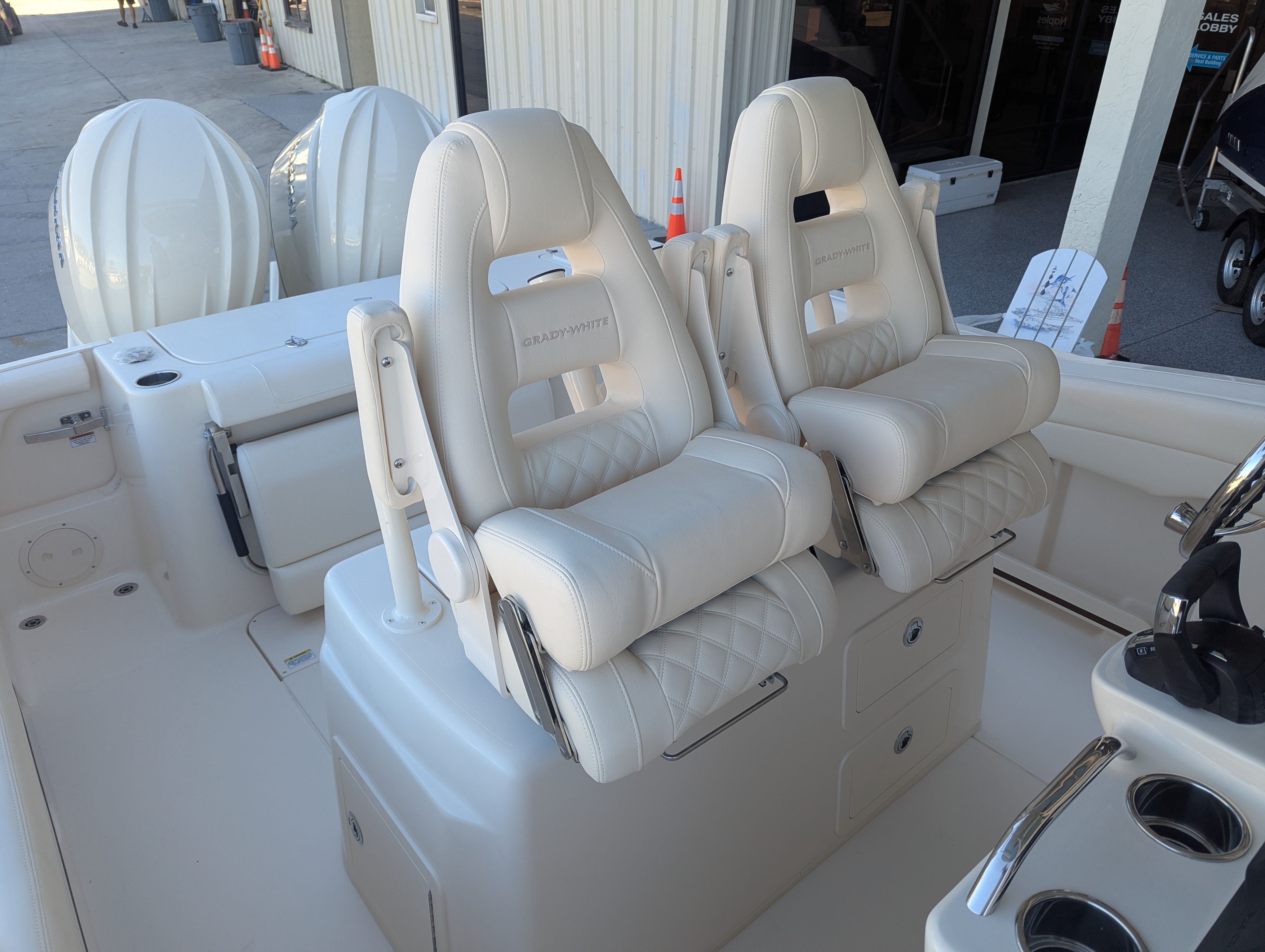 At the heart of the Canyon 271 are dual CW Yamaha F300 IDES engines, providing a combined 600 horsepower for exhilarating speed and responsive handling. These twin engines are renowned for their reliability, fuel efficiency, and smooth operation, making every journey on the water a pleasure. The power and agility of the Canyon 271 allow you to reach your favorite fishing spots quickly, navigate coastal waters with confidence, and enjoy thrilling rides with friends and family. Whether you’re cruising at a leisurely pace or opening up the throttles for a burst of speed, the performance of this Grady-White boat for sale is sure to impress.