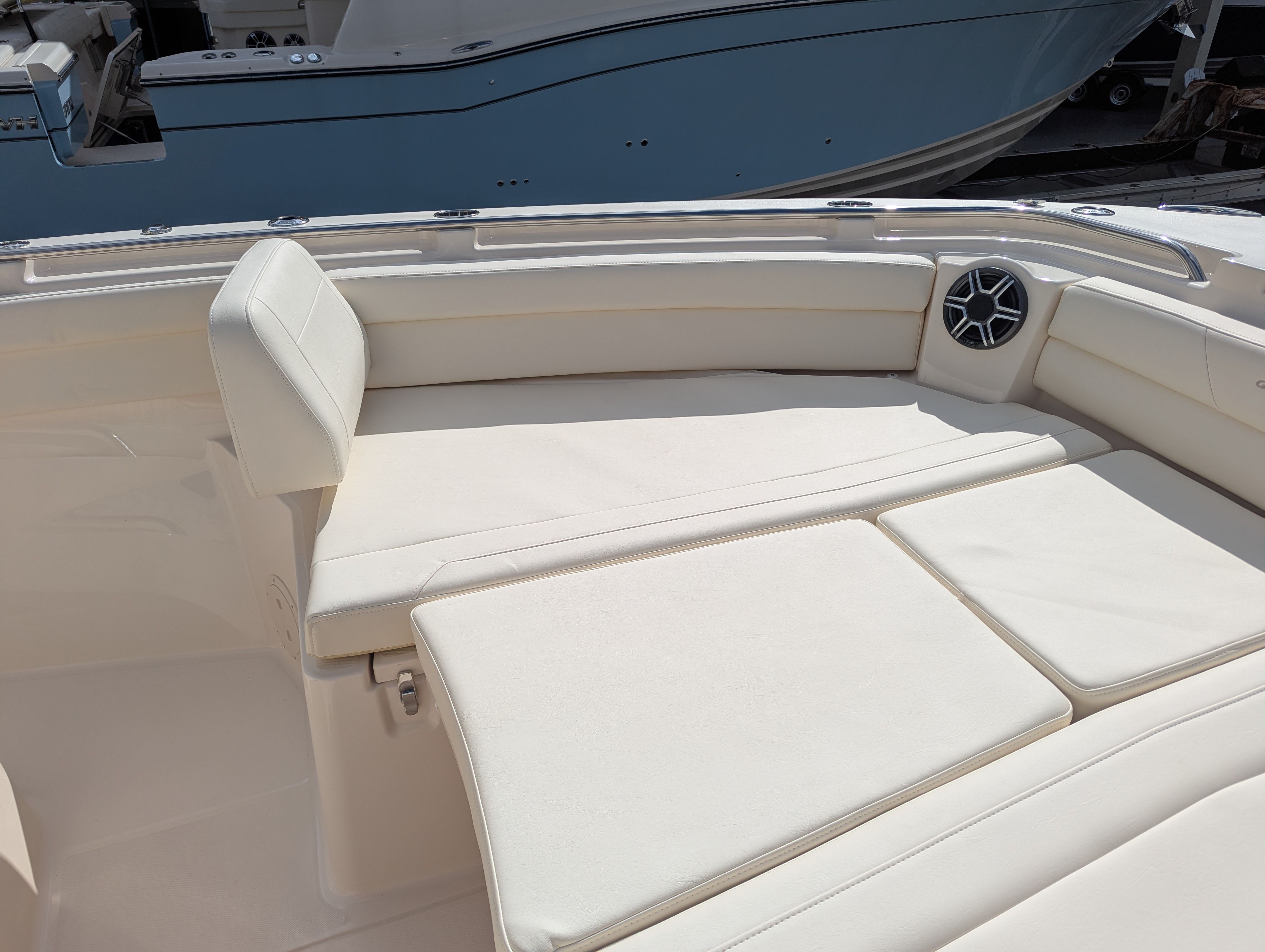 The Grady-White Canyon 326 is as practical as it is luxurious. The center console design offers excellent visibility and maneuverability, making docking and navigating tight spaces a breeze. The cockpit step on the starboard side enhances accessibility, while the electric Sure Shade top and additional shades provide customizable comfort for all-day enjoyment.Underwater lights are perfect for evening cruises, adding both safety and ambiance. The durable gel coat finish ensures that your boat maintains its stunning appearance with minimal maintenance, allowing you to focus on enjoying your time on the water. The thoughtful layout and premium materials make this boat easy to clean and maintain, so you can spend more time making memories and less time on upkeep.