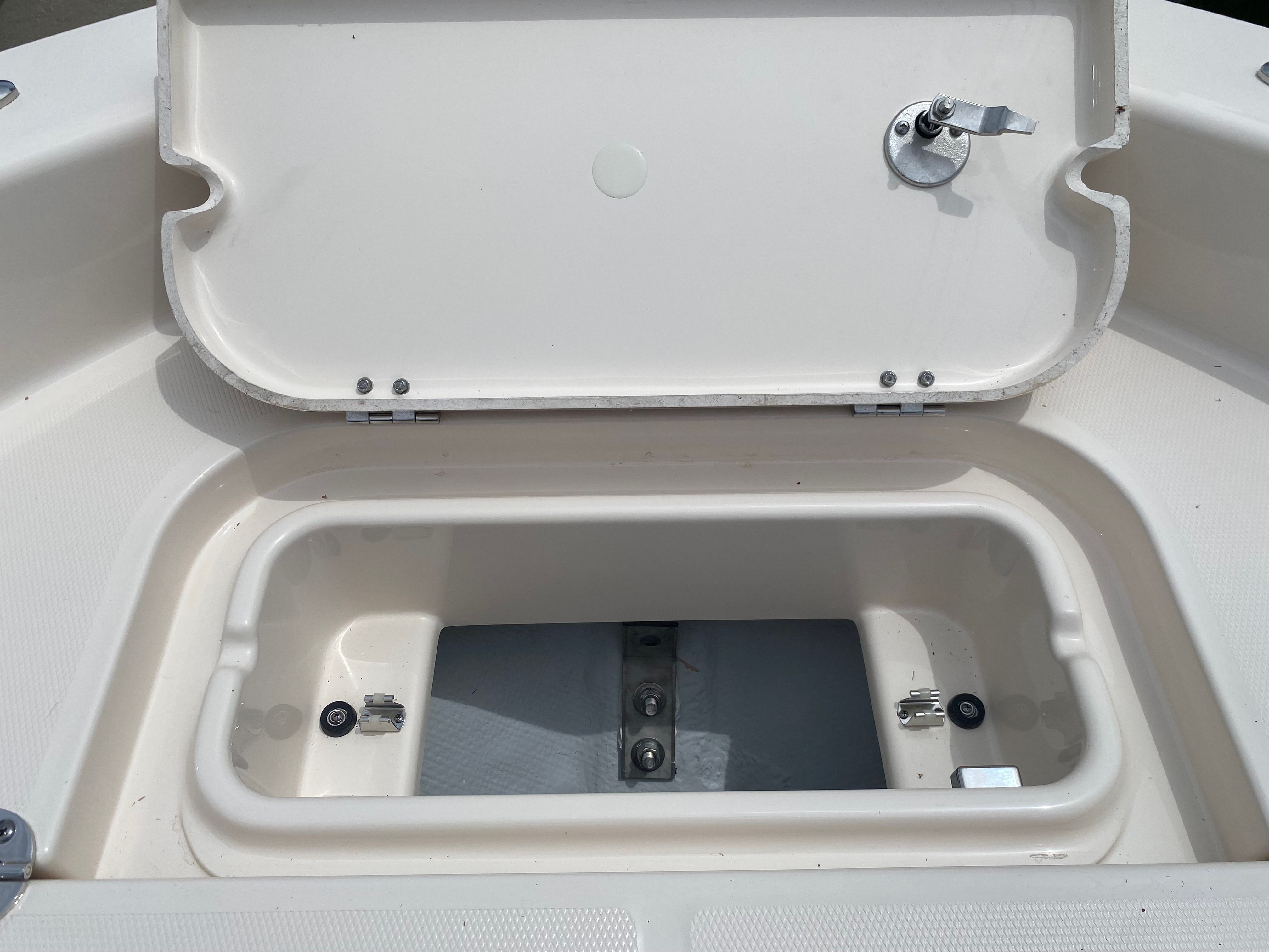 The Grady-White Coastal Explorer 231 is loaded with special features designed to enhance your boating experience. The Bow Fiberglass Table offers a convenient space for dining, entertaining, or relaxing with friends and family. The Casting Platform Extension with Cushion transforms the bow into a comfortable area for fishing or lounging, adding versatility to your outings. For added convenience, the Windshield Wiper ensures clear visibility in all weather conditions, while the Trolling Motor Prep Package makes it easy to customize your boat for fishing adventures.The Handi Head (PH with Deck Pump Out) provides a practical solution for extended trips, ensuring comfort and convenience on the water. The Gel Coat in Coastal Fog Blue gives the boat a sleek, modern appearance, complemented by the Jit Top Underside in the same elegant hue. These thoughtful touches not only enhance the boat’s aesthetics but also reflect Grady-White’s commitment to quality and style.