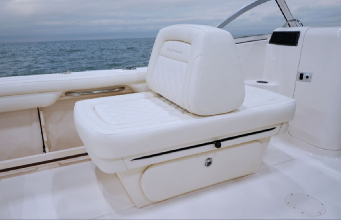 This Grady-White boat for sale comes loaded with special features that enhance both convenience and enjoyment on the water. The cockpit shower provides a quick and easy way to rinse off after a swim, while the Command Elite helm chair ensures maximum comfort and support for the captain during long days at sea. The lounge seat on the port side features a sliding back, allowing for versatile seating arrangements and added relaxation.For anglers, the raw water livewell and raw water wash down make it simple to keep your catch fresh and your deck clean. The ski pylon adds an extra dimension of fun, making it easy to tow skiers or wakeboarders for high-energy water sports. Additional features such as freight, prep, fuel, USCG gear, PDI, orientation, and ship style line loose ensure that this boat is ready for immediate use, with all the essentials taken care of.The Ocean Mist Blue gel coat not only enhances the boat’s aesthetic appeal but also provides a durable and easy-to-maintain finish. Every detail of the 215 Freedom is designed with the user in mind, from the ergonomic seating to the intuitive layout of controls and storage spaces.