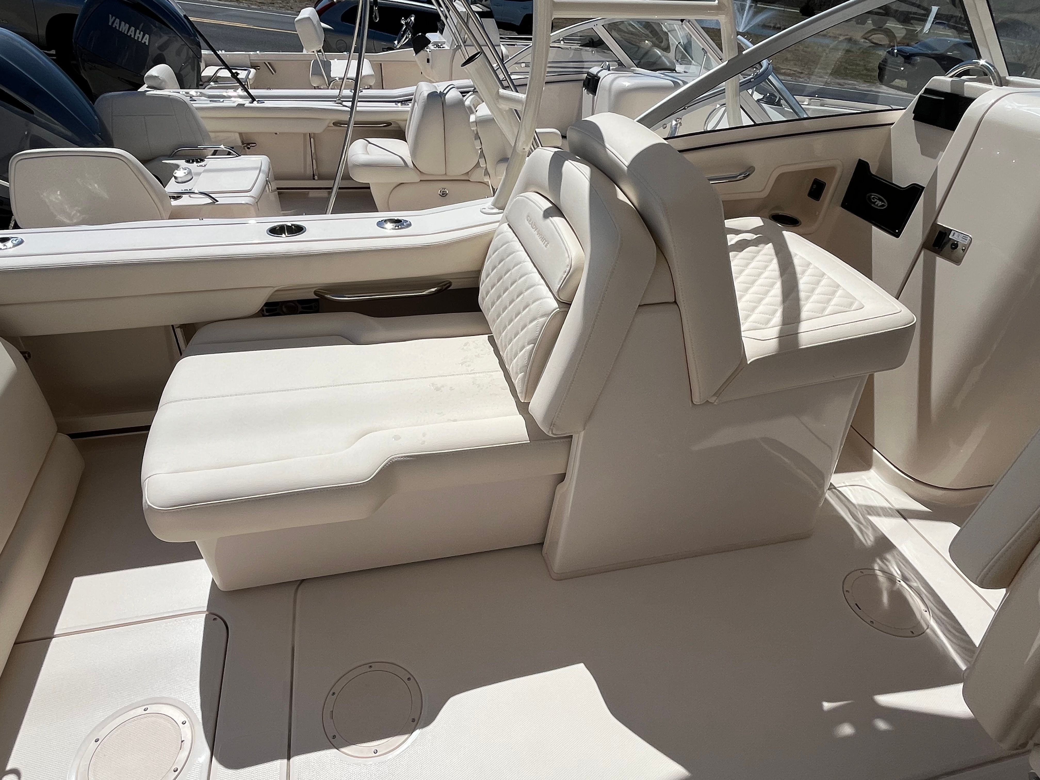 Ivory Aft Tonneau Cover – Protects cockpit seating and helm area when not in use.