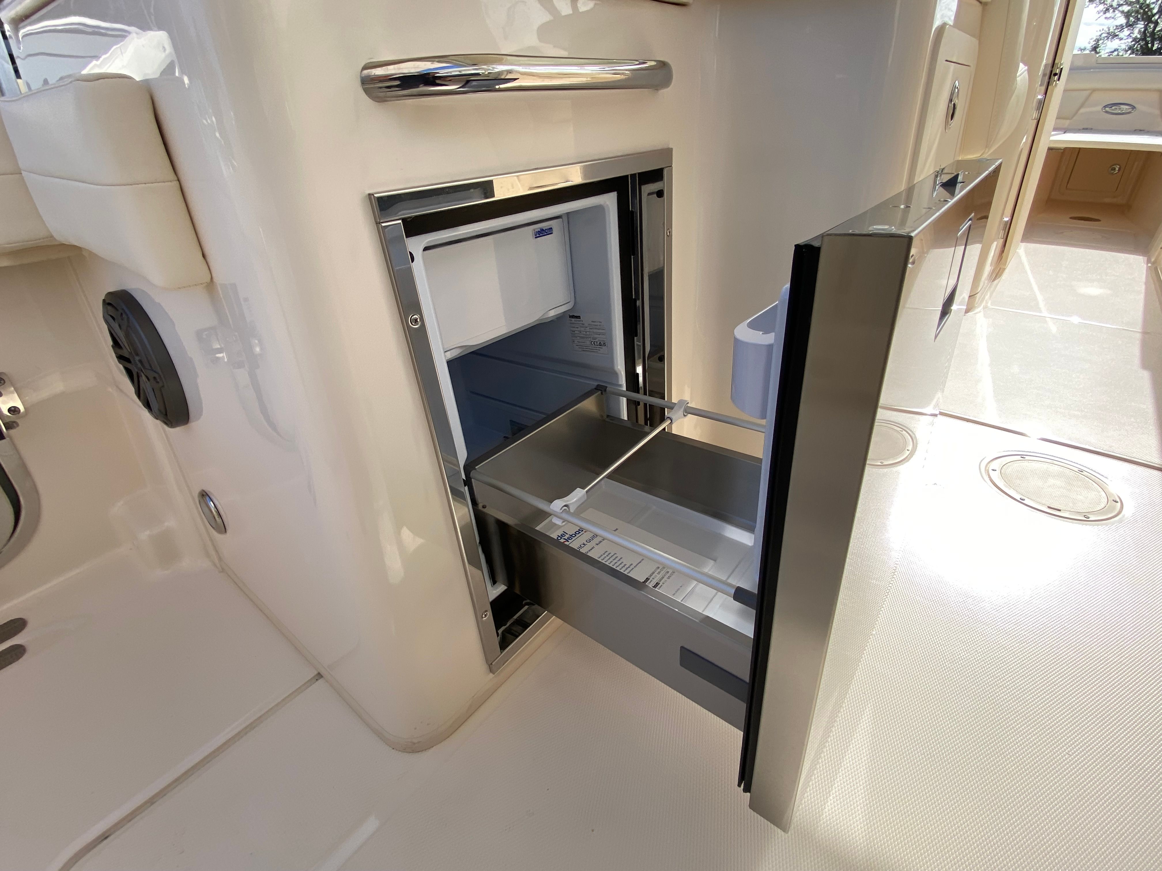 The 2026 Grady-White Freedom 285 is loaded with premium features designed to enhance your boating experience. The install silver logos add a touch of sophistication, while the side bar with Corian countertop and integrated sink provides a convenient space for preparing snacks and drinks. The sun platform insert with cushion creates a comfortable lounging area, perfect for soaking up the sun or relaxing with a good book. The refrigerator in the bar ensures your refreshments stay cool and easily accessible throughout the day.For those who love to entertain or enjoy evening cruises, the three underwater lights create a captivating ambiance, illuminating the water and adding a touch of elegance to your outings. The electric Sure Shade top in Oyster offers adjustable shade at the touch of a button, providing relief from the sun when you need it most. The ivory bow shade extends your comfort options, allowing you to create a cool, shaded retreat at the front of the boat.