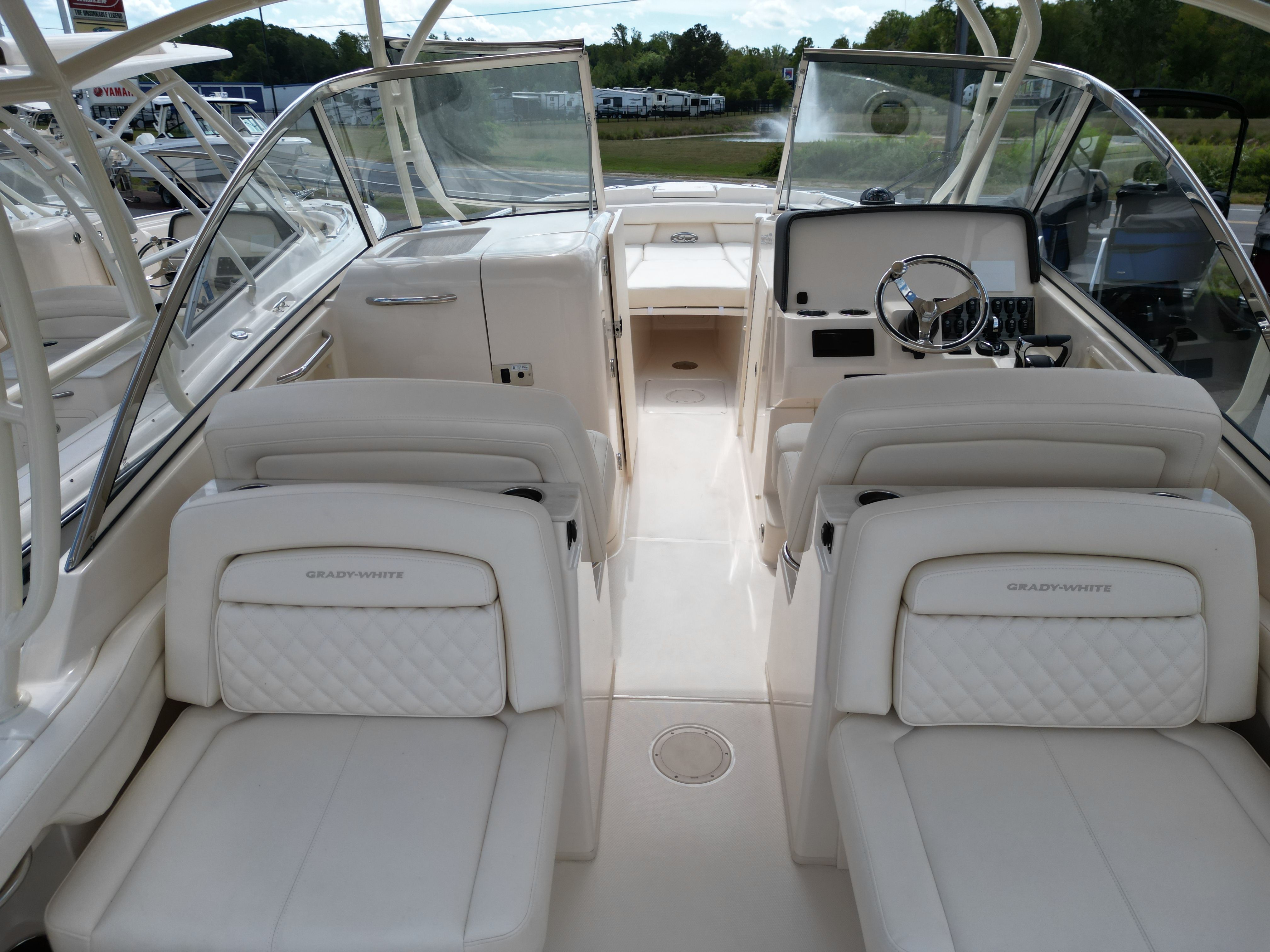 The Grady-White Freedom 285 is as practical as it is luxurious. Its 28-foot length provides ample storage for gear, water toys, and supplies, ensuring you have everything you need for a day of fun. The dual console layout makes docking and maneuvering a breeze, while the efficient Yamaha engines offer excellent fuel economy for longer trips and more time on the water.The boat’s protective covers help keep your investment in top condition, shielding the seating areas from sun, rain, and debris. The electric Sure Shade top adds convenience by allowing you to adjust the amount of shade with the push of a button, so you can stay comfortable no matter the weather. Underwater lights not only enhance the boat’s appearance but also improve visibility during nighttime docking or fishing.