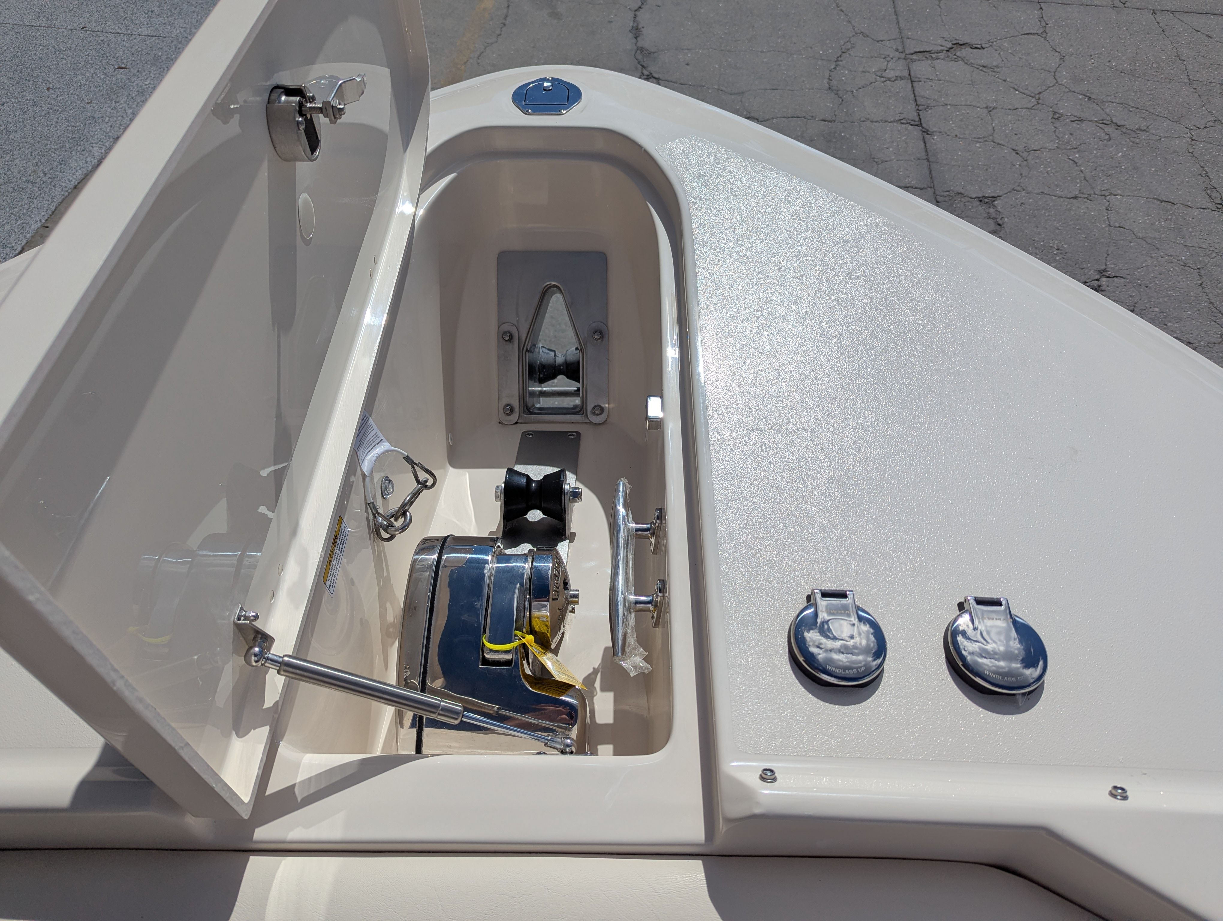 The Grady-White Freedom 307 is loaded with features that elevate your boating experience. The starboard lounge seat offers a plush spot to relax, while the sun platform insert with cushion transforms the bow into a sunbather’s paradise. Underwater lights add a dramatic flair for evening cruises, creating a captivating ambiance both above and below the waterline. The whole hull gel in Celestial Blue not only enhances the boat’s visual appeal but also speaks to Grady-White’s attention to detail and quality.For those who appreciate comfort and protection from the elements, the electric Sure Shade top in Oyster provides effortless shade at the touch of a button. The ivory bow shade and ivory hard top aft curtain offer additional coverage, ensuring you and your guests stay cool and comfortable throughout the day. Every feature is thoughtfully designed to maximize enjoyment, convenience, and style.