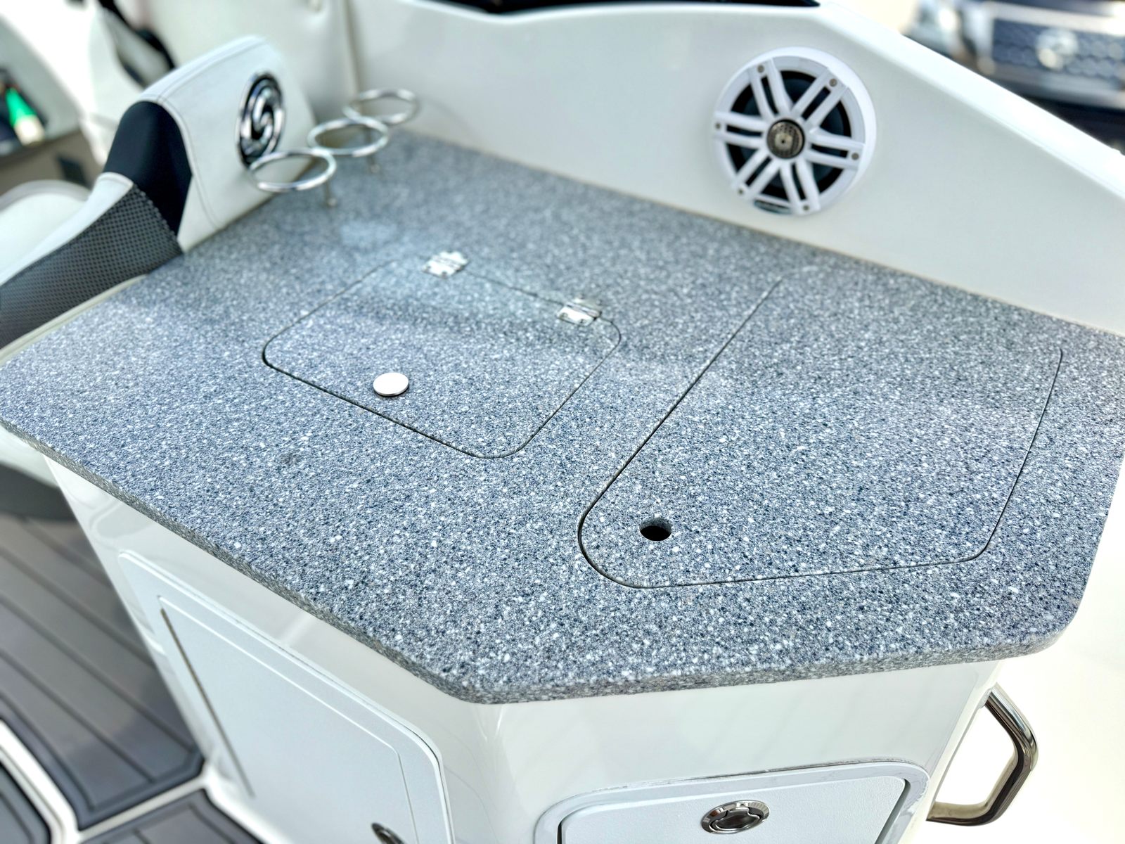 Powering the Hurricane Sundeck 2690 OB is a robust single engine with an impressive 300 horsepower. This setup ensures smooth acceleration, reliable handling, and plenty of power for towing water toys or navigating open waters. With 181 engine hours, this boat has been lightly used and is ready to deliver many more seasons of dependable performance. The combination of Hurricane’s renowned hull design and the powerful outboard engine means you’ll enjoy a stable, responsive ride, whether you’re cruising along the shoreline or heading out for a day of adventure.