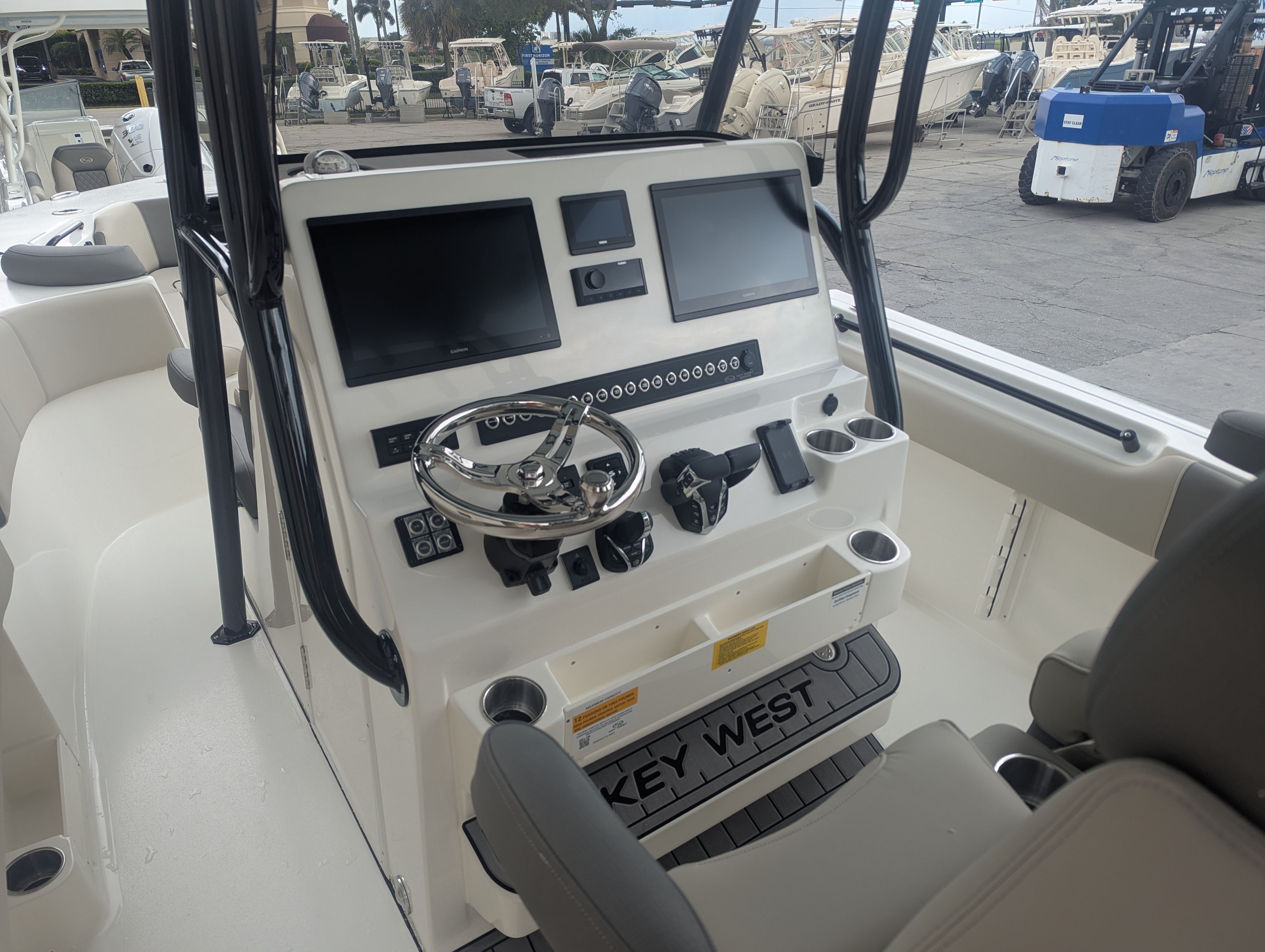 In summary, the 2026 Key West 291 FS is a top-tier center console boat for sale that combines cutting-edge performance, innovative features, and unmatched style. With twin Yamaha F300XSB2 LF300XSB2 engines, integrated steering, a Garmin Twin 8616XSV touch combo, and a host of premium amenities, this boat is designed to elevate your boating experience. The striking Ice Blue hull, Premier Fog cushions, and black powdercoat accents set it apart from the crowd, while the practical layout and advanced technology make every trip enjoyable and hassle-free.If you are searching for a Key West boat for sale that offers the perfect blend of performance, comfort, and versatility, the 291 FS is an outstanding choice. Don’t miss the opportunity to make this exceptional center console your own—contact your local dealer today to learn more and start your next adventure on the water.