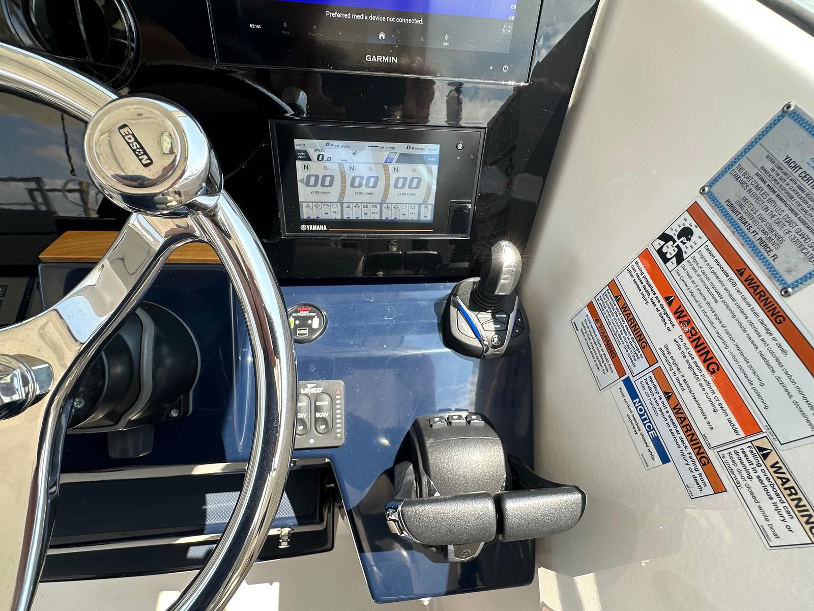 The Pursuit 355 OS is designed with both luxury and functionality in mind. Its spacious layout provides plenty of room for guests, making it ideal for social gatherings and extended trips. The cruiser’s thoughtful design maximizes comfort, with well-appointed seating areas and ample deck space for sunbathing, dining, or simply enjoying the view. The helm station is ergonomically designed for ease of use, offering excellent visibility and intuitive controls for a stress-free boating experience. Every detail of this Pursuit boat for sale reflects the brand’s commitment to quality craftsmanship and innovative design.