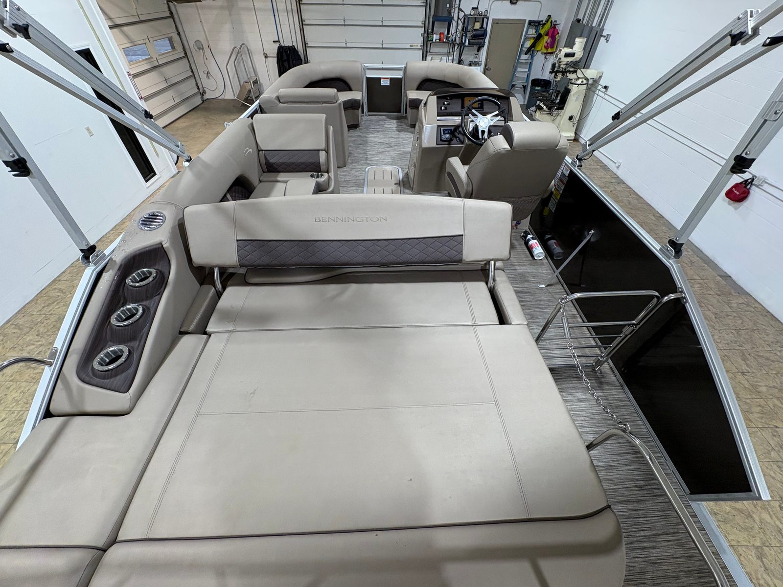 Powering this Bennington 22 LSB is a robust single engine delivering 200 horsepower, ensuring a smooth and exhilarating ride every time you hit the water. With 397 engine hours, this pontoon boat has been well-maintained and is ready to provide many more seasons of enjoyment. The 200 HP engine offers the perfect balance of power and efficiency, allowing you to glide effortlessly across the water, tow water toys, or reach your favorite fishing spots with ease. Whether you are cruising at a leisurely pace or seeking a bit of excitement, the performance capabilities of this Bennington boat for sale will not disappoint.