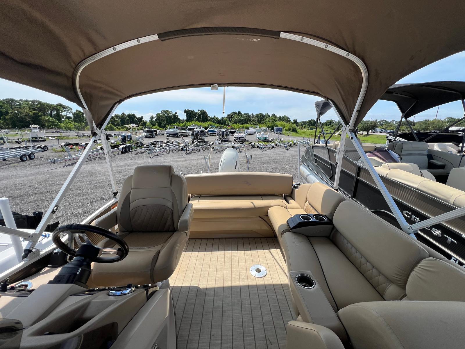 The Bennington 2375 RSB is thoughtfully designed with features that enhance both comfort and convenience. Its spacious deck layout offers plenty of seating for family and friends, creating a welcoming environment for socializing and relaxation. The high-quality construction and attention to detail are evident in every aspect of the boat, from the plush seating to the durable flooring. The pontoon’s design maximizes usable space, ensuring that everyone on board has room to stretch out and enjoy the ride.Special features of the 2375 RSB include a stylish and functional helm, providing the captain with easy access to controls and instrumentation. The intuitive layout ensures that operating the boat is straightforward and enjoyable, even for those new to boating. The pontoon’s sturdy construction and premium materials contribute to its longevity, making it a smart investment for anyone seeking a reliable and attractive used pontoon boat for sale.