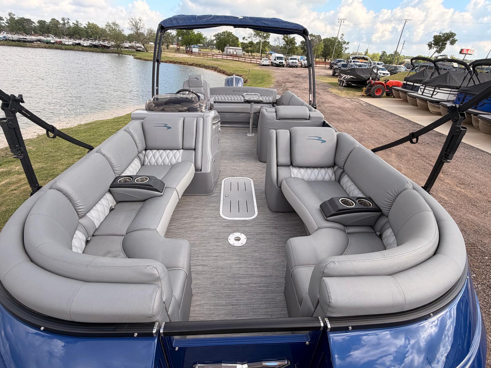 The 2020 Bennington 25 Qxsb is packed with features that enhance both comfort and convenience. Its spacious 25-foot length offers ample room for guests to relax, socialize, and enjoy the scenery. The thoughtfully designed layout maximizes seating and open space, making it easy to move around and find your perfect spot on board. Premium materials and attention to detail are evident throughout, from the plush seating to the stylish accents that define the Bennington brand.This pontoon boat for sale is equipped with a range of amenities that cater to your every need. The expansive deck is ideal for sunbathing, entertaining, or simply soaking in the views. The intuitive helm station puts you in complete control, while the ergonomic seating ensures comfort during long days on the water. Every inch of the Bennington 25 Qxsb is designed with your enjoyment in mind, making it a standout choice among used pontoon boats for sale.