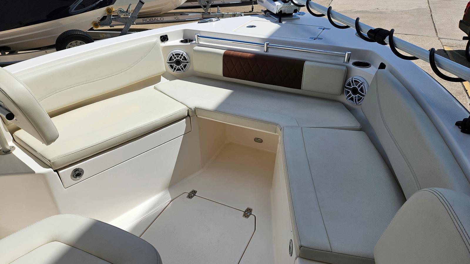 Powered by a single 150-horsepower engine with only 129 hours, the 2022 Cobia 240 CC offers a smooth and responsive ride. The engine’s impressive horsepower ensures that you have the power to navigate a variety of water conditions, from calm lakes to coastal waters. With its efficient design, this center console boat for sale provides excellent fuel economy, allowing you to spend more time on the water and less time at the fuel dock. The engine’s low hours reflect careful use and promise many more seasons of dependable performance. Whether you are chasing the next big catch or cruising to your favorite waterfront destination, the Cobia 240 CC delivers the performance you expect from a leading center console brand.