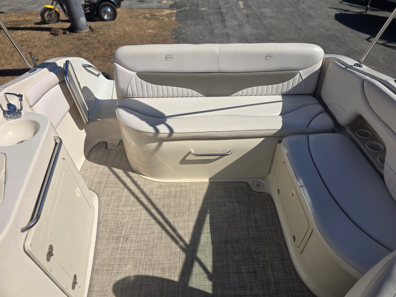 In addition to its recreational benefits, the 2003 Crownline 239 DB offers practical features that enhance the overall boating experience. The ample storage space allows you to bring along all your essentials, from water toys and fishing gear to picnic supplies and extra towels. The efficient layout makes it easy to keep the deck organized and clutter-free, so you can focus on enjoying your time on the water.Docking and maneuvering are made simple thanks to the responsive handling and manageable size of the 239 DB. Whether you are navigating a busy marina or pulling up to your favorite beach, this deckboat offers the control and confidence you need. The single-engine setup also contributes to fuel efficiency, helping you make the most of every trip without worrying about excessive fuel costs.