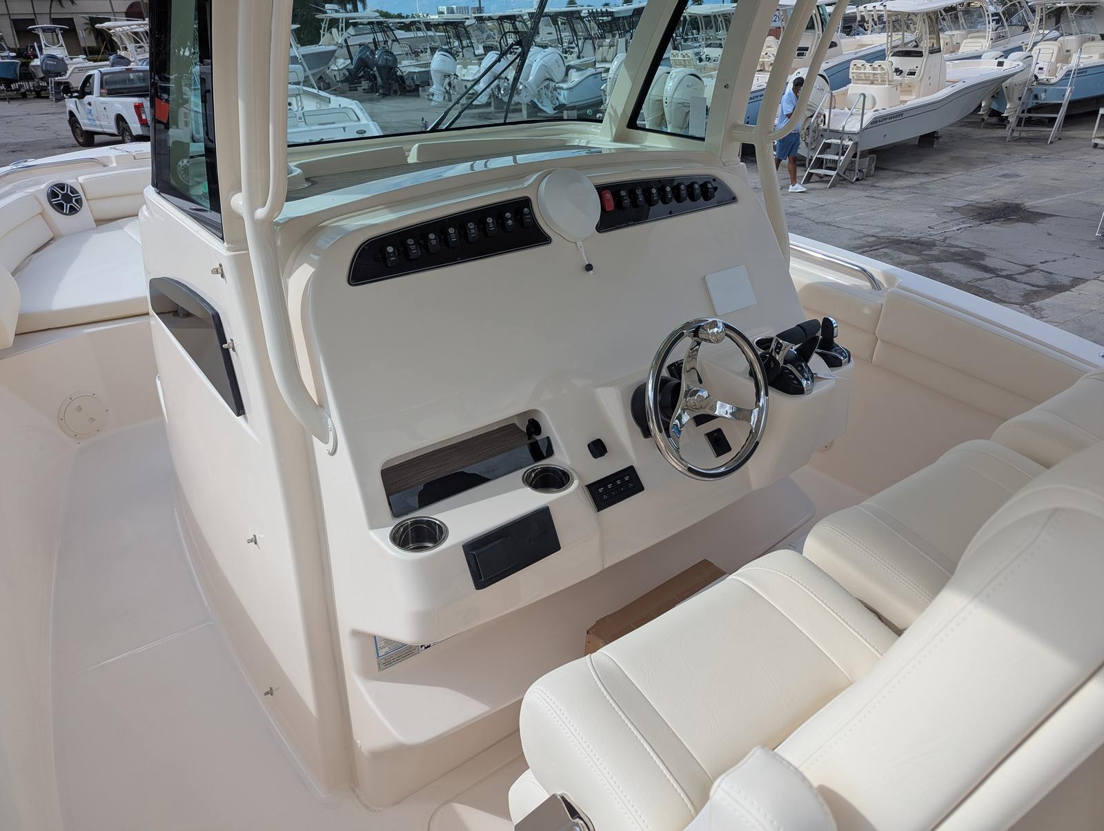 The Grady-White Canyon 326 is as practical as it is luxurious. The center console design offers excellent visibility and maneuverability, making docking and navigating tight spaces a breeze. The cockpit step on the starboard side enhances accessibility, while the electric Sure Shade top and additional shades provide customizable comfort for all-day enjoyment.Underwater lights are perfect for evening cruises, adding both safety and ambiance. The durable gel coat finish ensures that your boat maintains its stunning appearance with minimal maintenance, allowing you to focus on enjoying your time on the water. The thoughtful layout and premium materials make this boat easy to clean and maintain, so you can spend more time making memories and less time on upkeep.