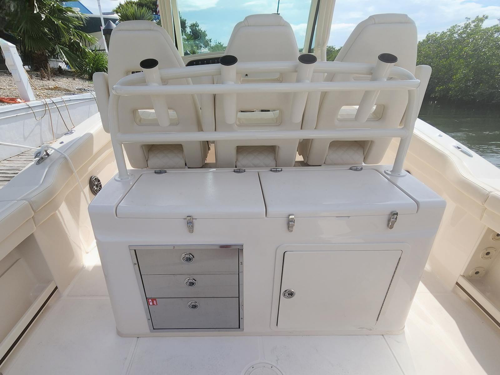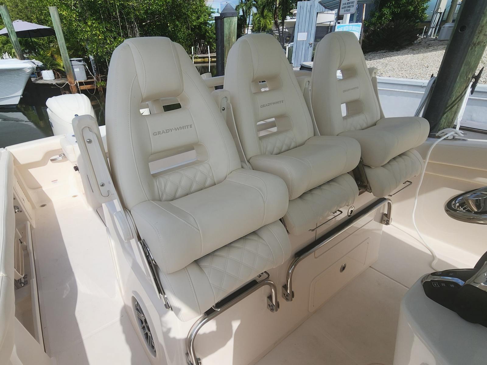 Owning the Grady-White Canyon 326 means embracing a lifestyle of fun, relaxation, and adventure. The spacious layout provides ample room for guests to move about comfortably, whether you are hosting a lively gathering or enjoying a peaceful day on the water. The combination of powerful engines and advanced features ensures that every outing is both thrilling and enjoyable. The shades and table create inviting spaces for socializing, while the high-quality construction and attention to detail guarantee a smooth, quiet ride. This Grady-White boat for sale is designed to maximize your enjoyment, making every trip memorable.