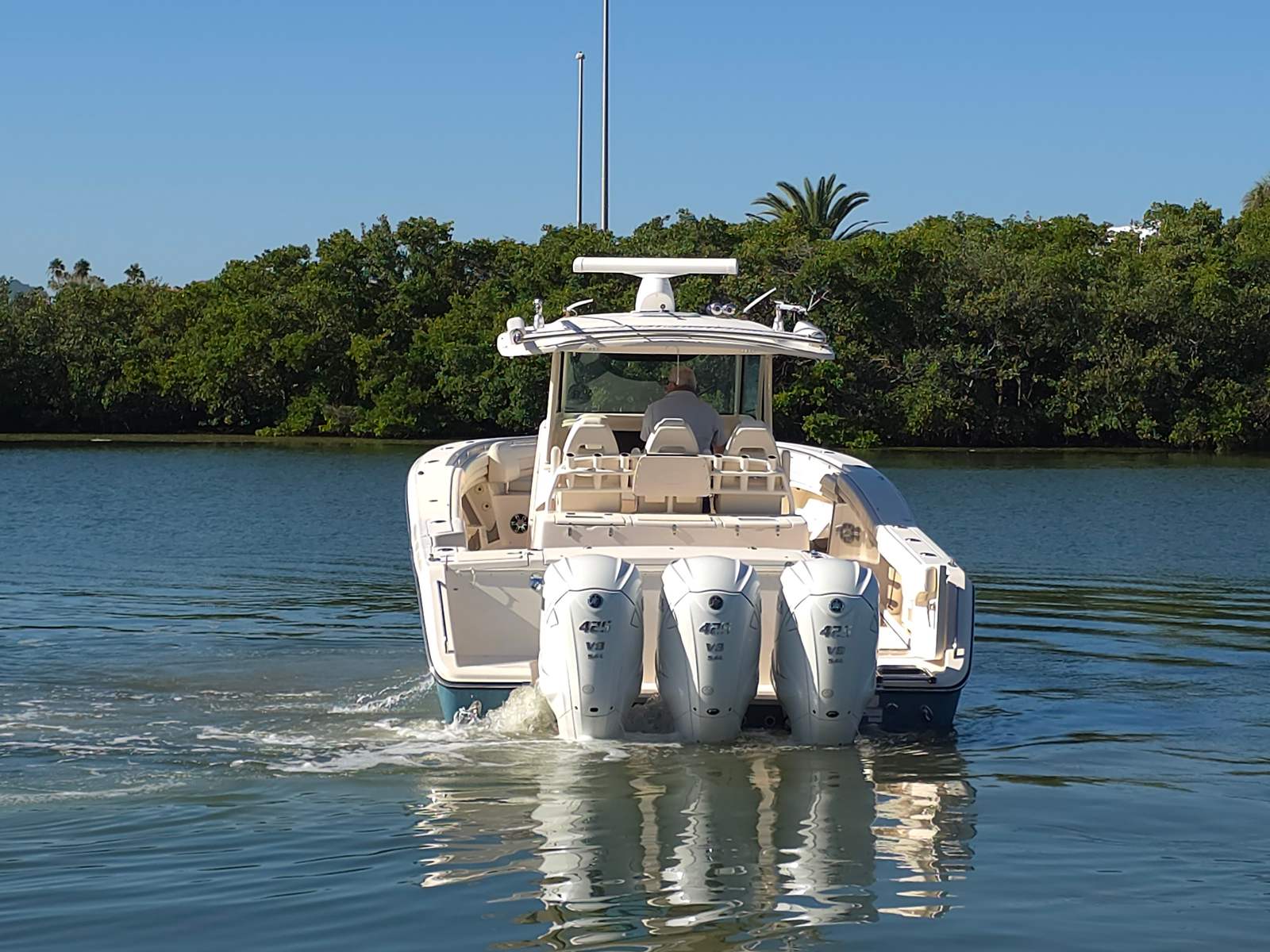 In summary, the 2019 Grady-White Canyon 376 is a standout Center Console boat for sale that combines power, comfort, and versatility in a stunning package. With triple engines delivering 1275 horsepower, a spacious 38-foot layout, and only 100 engine hours, this used Grady-White boat for sale is an outstanding opportunity for anyone seeking the ultimate boating experience. Its thoughtful design, premium features, and practical benefits make it the perfect choice for family outings, fishing adventures, and luxury getaways. Don’t miss your chance to own this exceptional Grady-White Canyon 376—contact the dealer today to learn more and start your next adventure on the water!