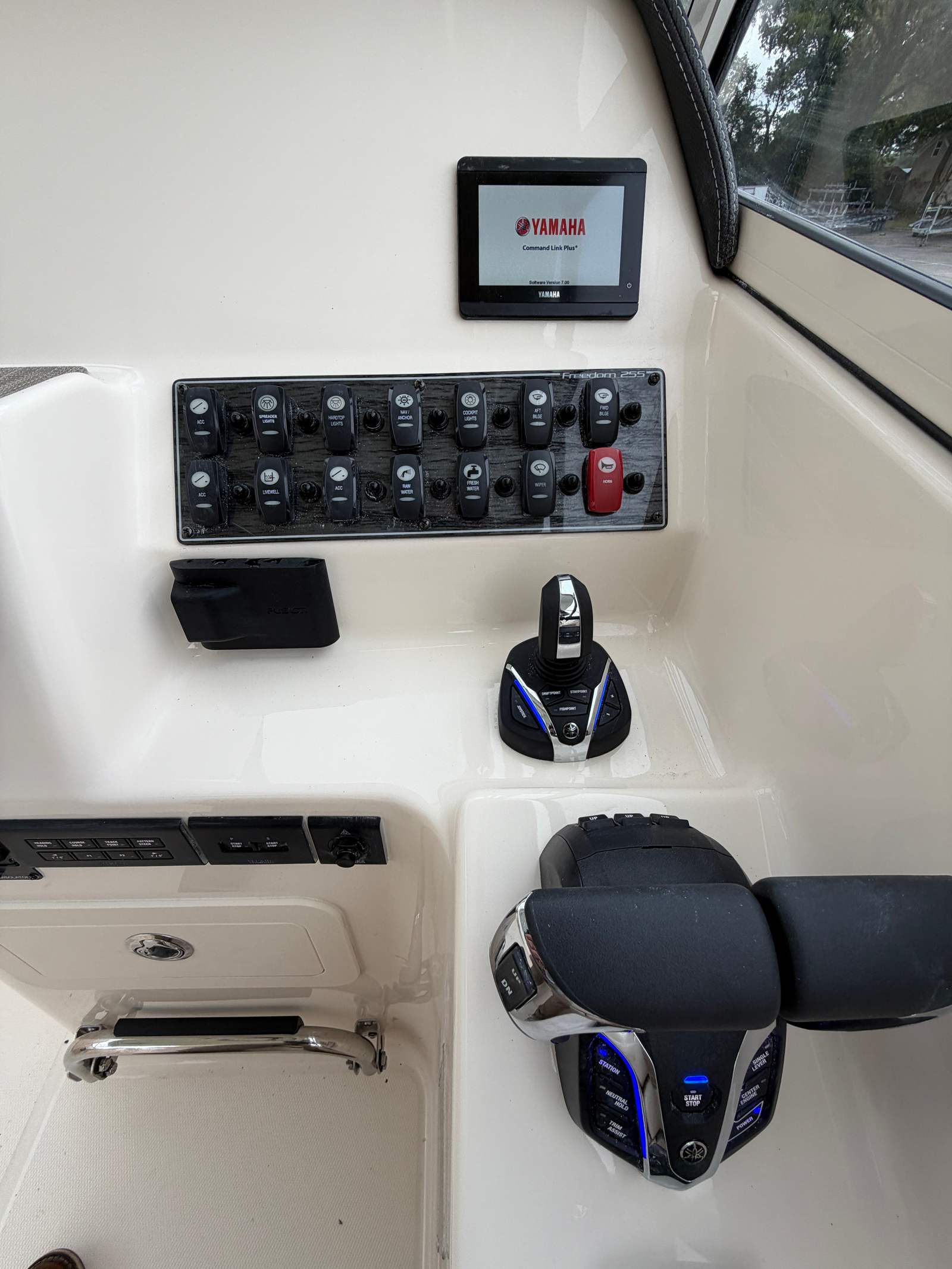 The Freedom 255 is designed with practicality in mind, making ownership easy and enjoyable. The dual engines simplify docking and maneuvering, while the Dockside Power & Battery Charger keeps your onboard systems running smoothly. The ample storage options, including the Deluxe Bar with Corian Sink & Storage, allow you to stow gear, snacks, and beverages for a full day of fun. The protective covers and curtains shield you from sun, wind, and rain, ensuring comfort in any conditions. With its versatile layout and thoughtful amenities, this Dual Console boat for sale is ideal for both short excursions and extended adventures.