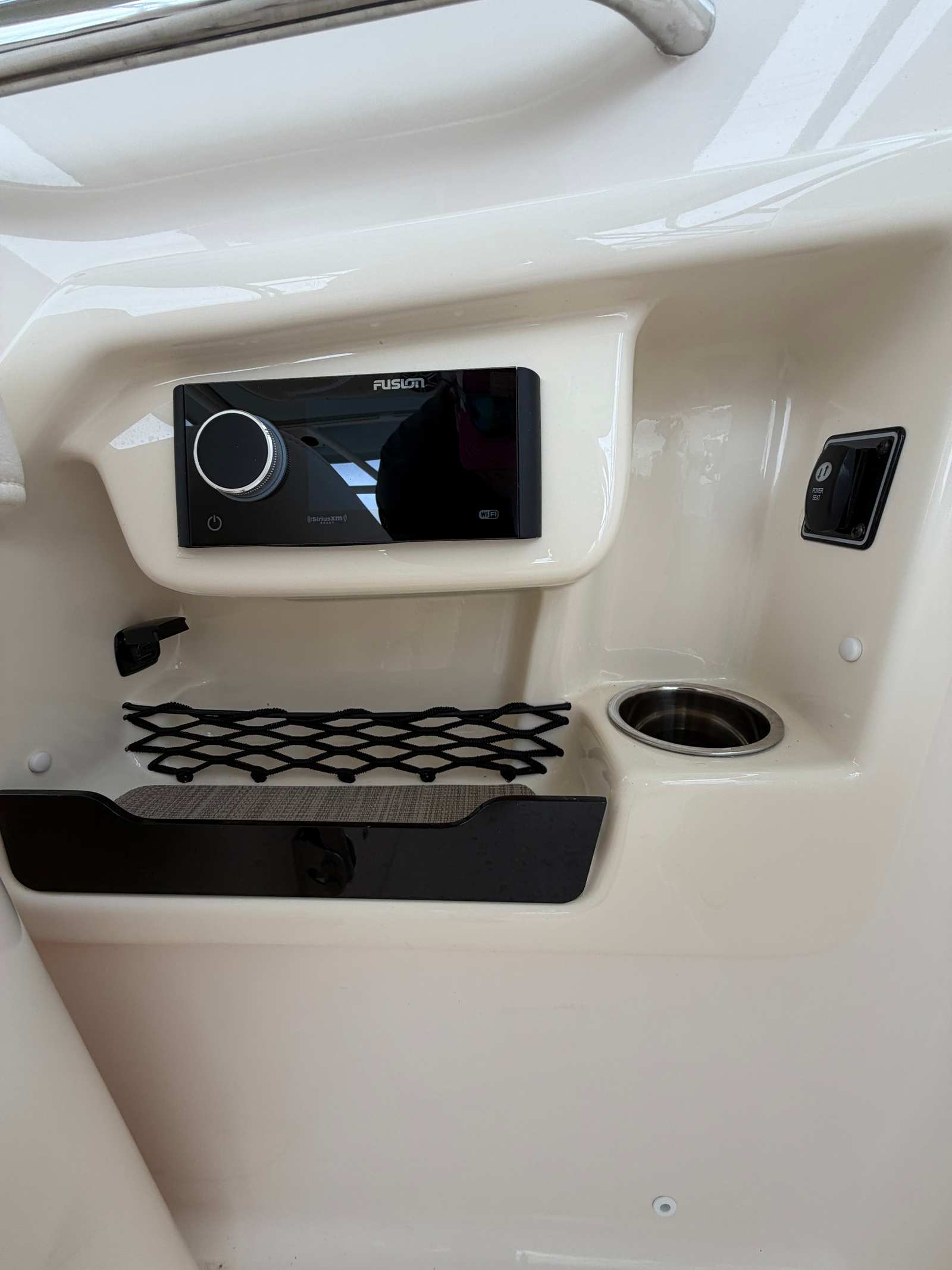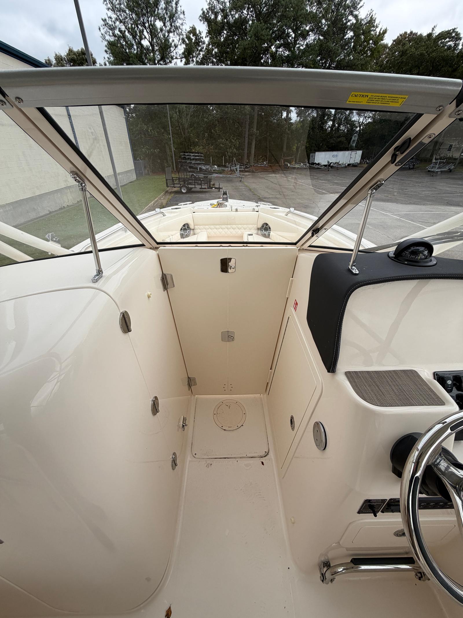 This Dual Console boat for sale is packed with premium features designed to enhance your time on the water. The JIT Top Underside Color in Sage Gray adds a touch of sophistication, complementing the hull’s elegant finish. Dockside Power & Battery Charger ensures your electronics and accessories stay powered up, making overnight stays and extended trips more convenient. The Ivory Bow Cover and Ivory Hard Top Drop Curtain provide protection from the elements, allowing you to enjoy boating in comfort regardless of the weather. The Deluxe Bar with Corian Sink & Storage elevates your entertaining options, offering a stylish and functional space for refreshments and socializing. Every detail of the Freedom 255 is thoughtfully designed to maximize enjoyment and convenience.