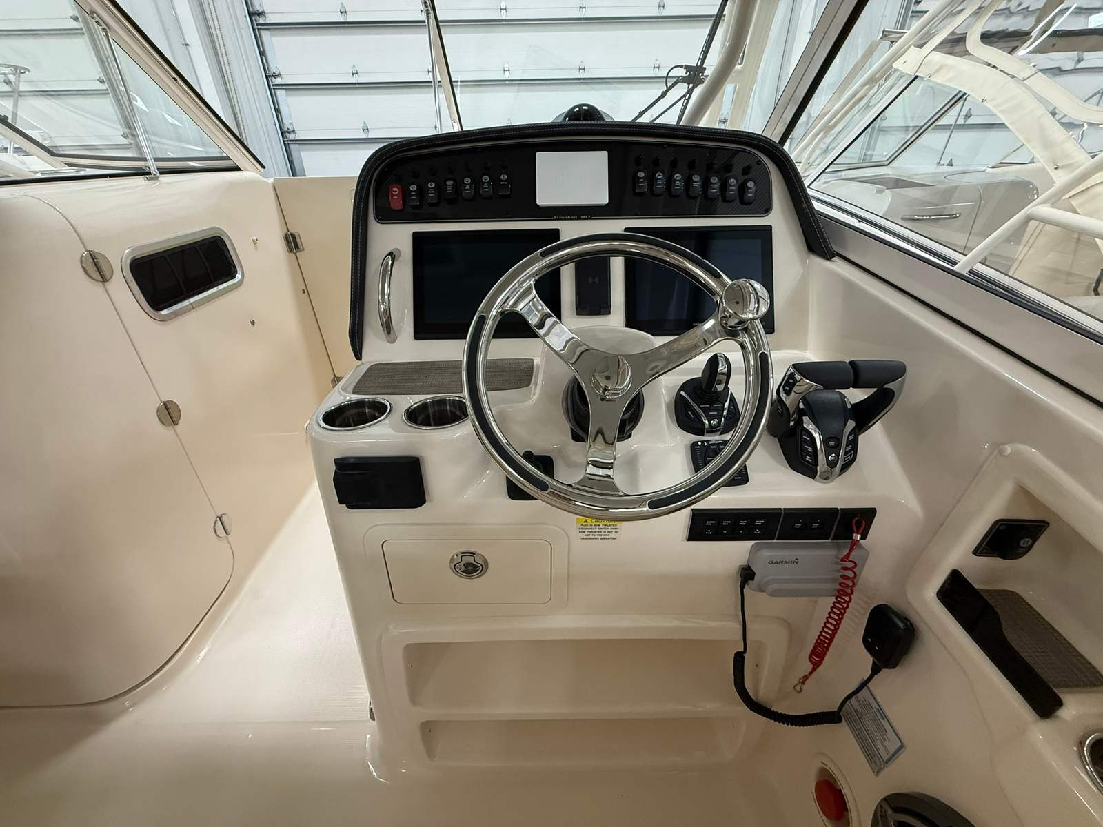 Power and precision define the Grady-White Freedom 307’s performance. Equipped with dual Yamaha F350XSB engines, this dual console boat boasts a total of 700 horsepower, delivering exhilarating speed and smooth handling in a variety of conditions. The prerig dual Yamaha F350XSB setup ensures optimal engine integration, providing reliable power whether you’re cruising, fishing, or entertaining. The advanced bow thruster enhances maneuverability, making docking and tight turns effortless even in challenging environments. With this level of performance, the Freedom 307 is ready to conquer open waters and coastal adventures alike.