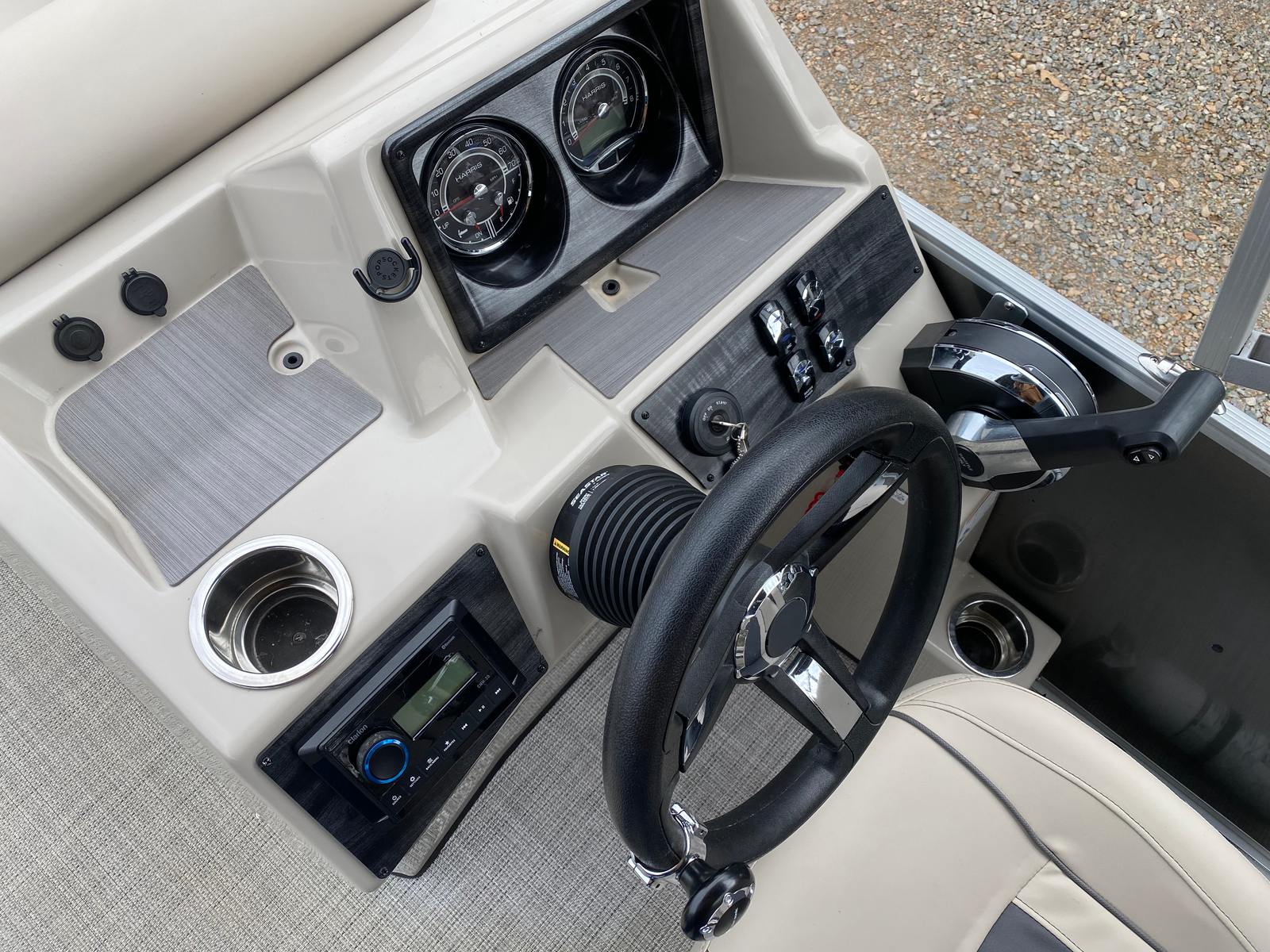 The Harris Cruiser 210 is as practical as it is enjoyable. Its manageable 21-foot length makes it easy to dock, trailer, and store, even for those new to boating. The efficient 150 HP engine helps keep fuel costs in check, allowing you to spend more time on the water without worrying about frequent refueling. The open deck provides plenty of storage space for gear, coolers, and water toys, ensuring you have everything you need for a full day of fun.Whether you are planning a day trip to a nearby island, a sunset cruise with friends, or a weekend fishing adventure, the Cruiser 210 adapts to your needs. Its user-friendly controls and intuitive layout make it easy to operate, while the sturdy construction and quality materials ensure lasting durability.