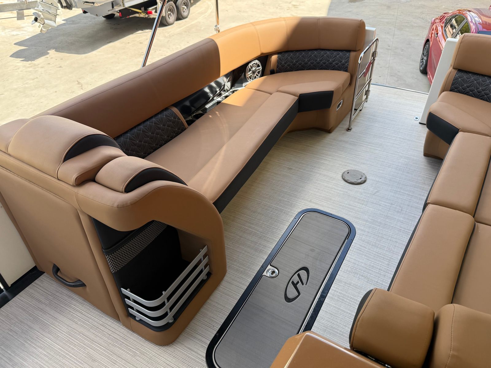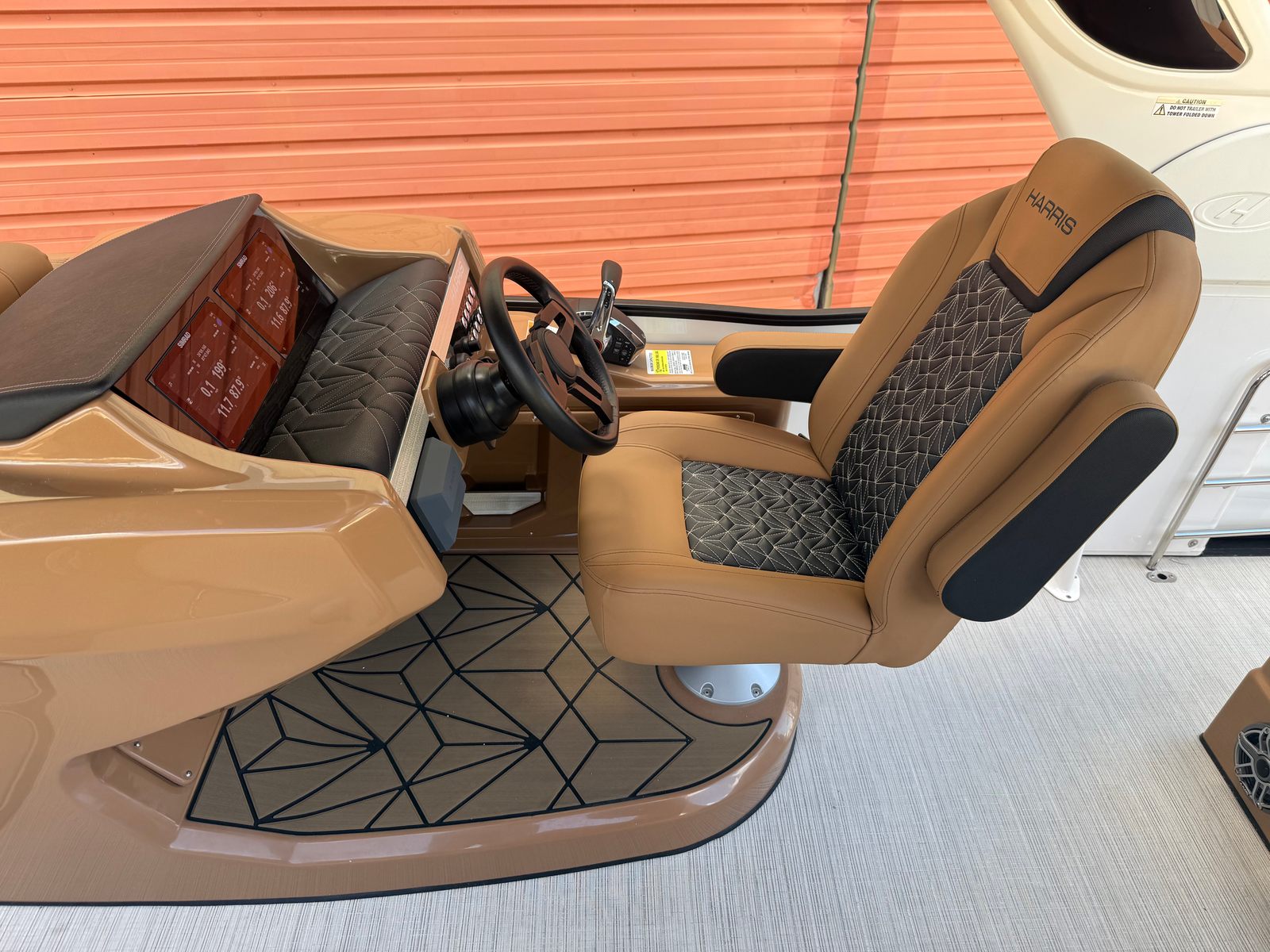 New to the market (9/2025), this 2024 Harris Grand Mariner 250 does not disappoint!! She is powered by a Mercury 350L V10 Verado with only 38 HOURS. She has a Collapsible Tower with Power Lift...press of a button at the Helm. Her Chestnut Brown upholstery with ONYX accents is stunning. She has double Captains Chairs with U-Lux (Hiback) and elevated Helm. Operating this GEM is extremely smooth with her Mercury Power Assist Steering.
