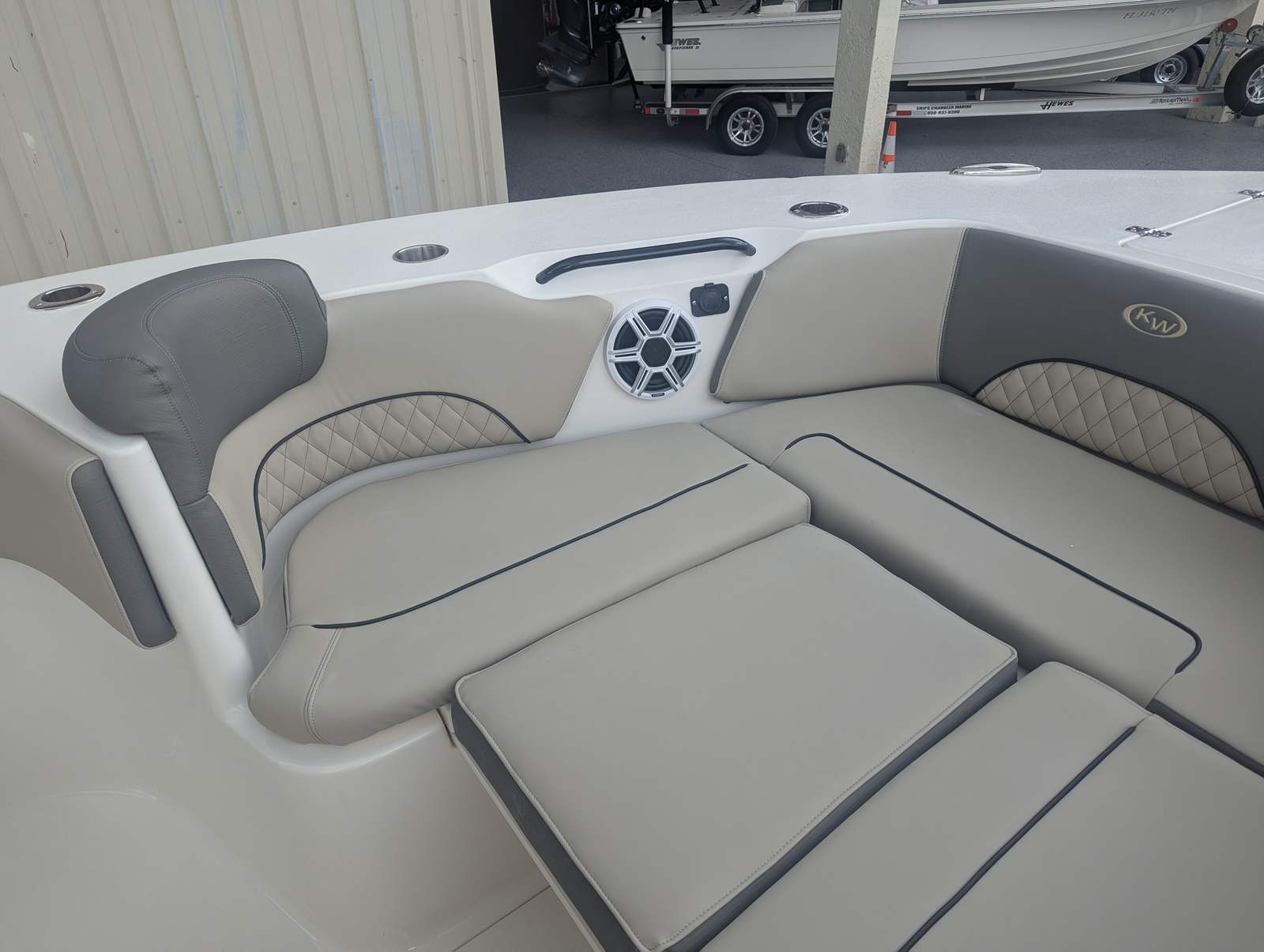- Tackle center flip-up bolster leaning post and rear facing seating