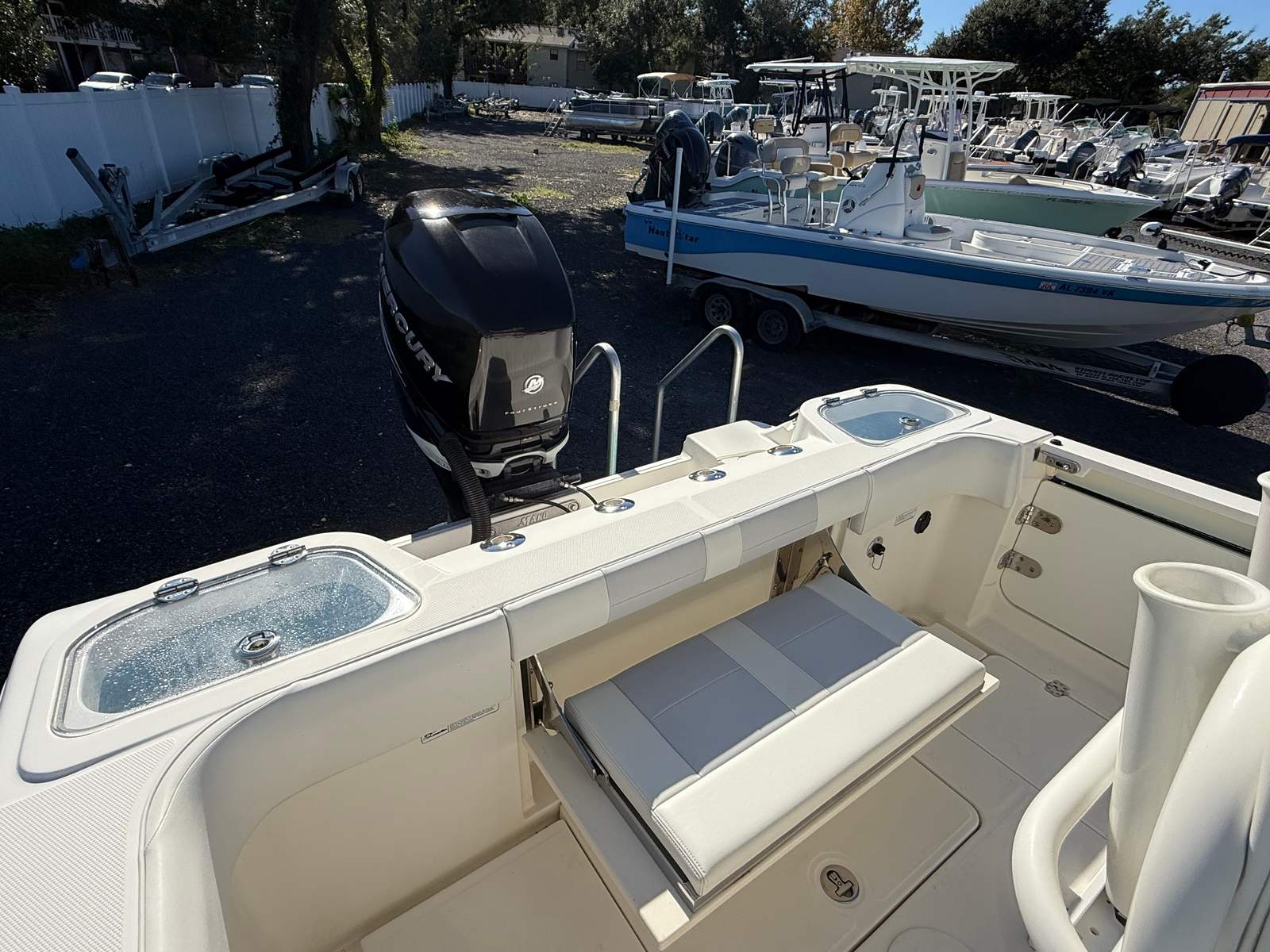 At the heart of the Mako 236 CC is a single, robust engine boasting 350 horsepower. This powerful setup ensures exhilarating acceleration, responsive handling, and the ability to tackle a variety of water conditions with confidence. Whether you’re heading out for a high-speed run or cruising leisurely along the shoreline, the engine’s impressive output delivers both excitement and reliability. With only 40 engine hours, you can trust that this Center Console boat for sale is ready to provide years of dependable performance. The combination of horsepower and efficiency means you’ll enjoy thrilling rides while maximizing fuel economy—a win-win for any boating enthusiast.
