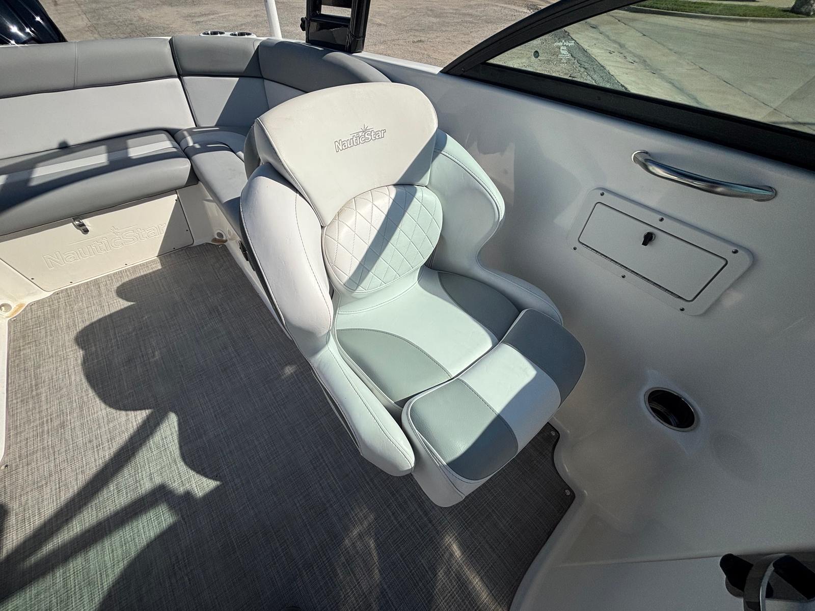 The Nauticstar 243 DC is packed with features that enhance both comfort and convenience. The dual console layout offers a perfect balance between open space and protection from the elements, making it suitable for a wide range of activities. The spacious cockpit and bow seating areas provide plenty of room for family and friends to relax, socialize, or soak up the sun. The ergonomic helm station is thoughtfully designed for easy access to controls and clear visibility, ensuring a confident and enjoyable driving experience.Special features of the 243 DC include plush seating with premium upholstery, ample storage compartments for all your gear, and a versatile layout that adapts to your needs. The dual console design allows for easy movement throughout the boat, while the integrated swim platform makes it simple to enjoy swimming, snorkeling, or watersports. The boat’s high-quality construction and attention to detail are evident in every aspect, from the durable hull to the stylish finishes.
