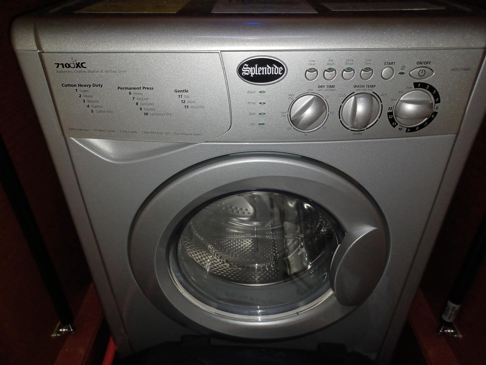 Splendide one-piece washer/dryer under companionway staircase to guest cabins