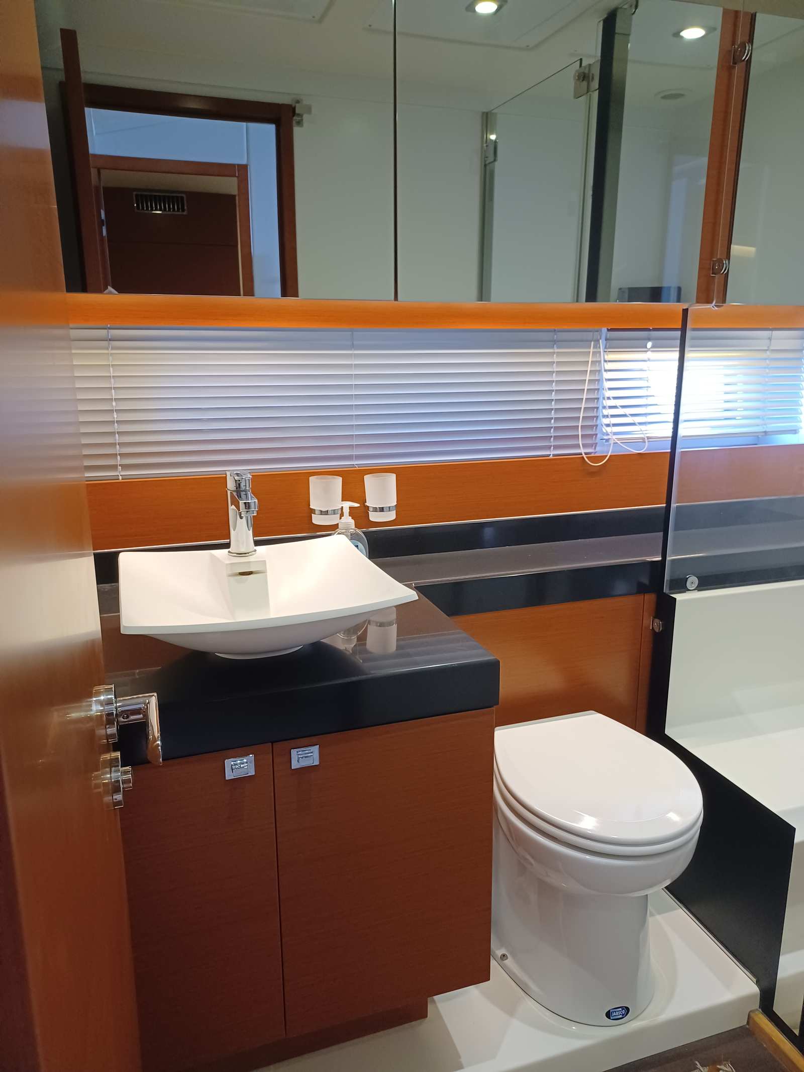 Jabsco freshwater flush heads in master stateroom and VIP/guest stateroom