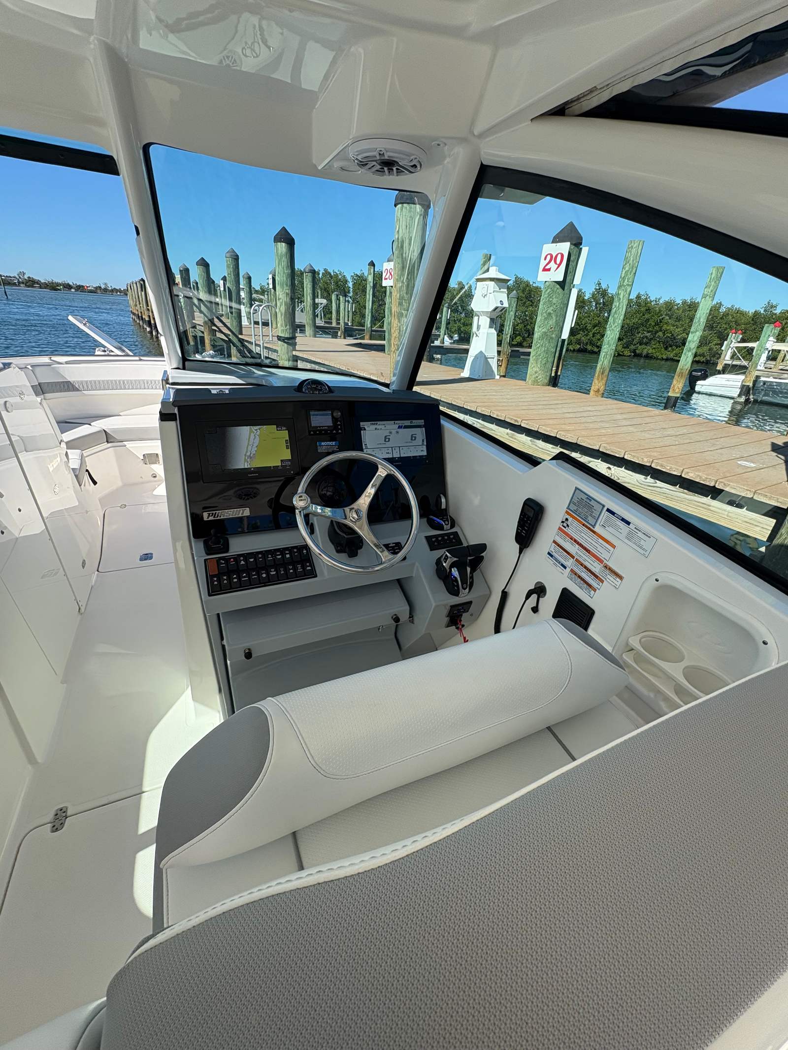 Experience exceptional performance and comfort with this 2023 Pursuit 326 DC, showing just 156 hours and loaded with premium equipment. Powered by twin Yamaha Digital F300 V6 Offshore engines with Yamaha Joystick Control, this versatile dual console delivers confident handling and effortless docking. A bow thruster and autopilot further enhance navigation and control.