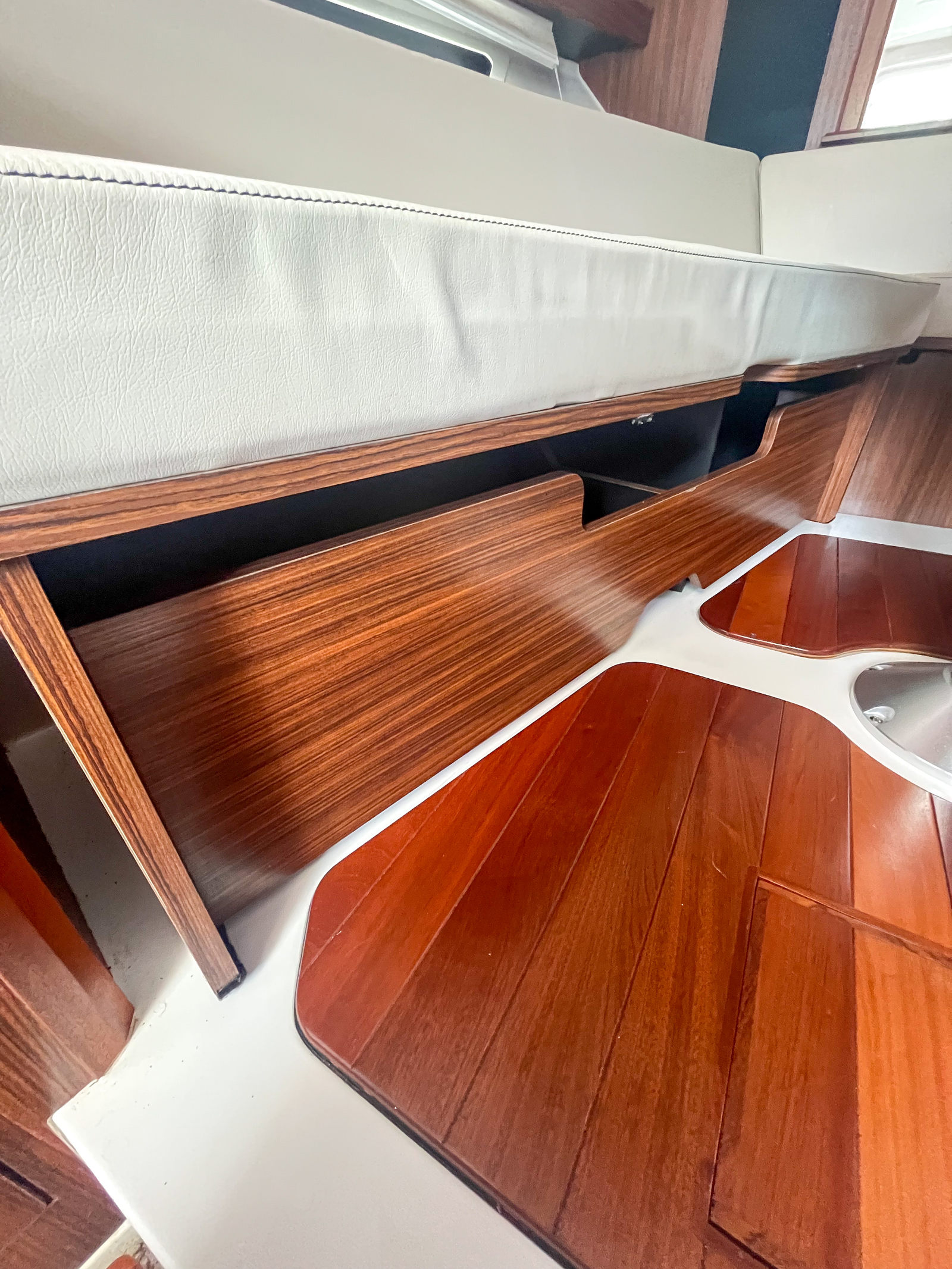 The Pursuit OS 355 is packed with features that enhance both its functionality and comfort. Its generous length of nearly 38 feet provides a spacious deck and cabin area, allowing for effortless movement and relaxation. The cruiser’s design incorporates high-quality materials and finishes, reflecting Pursuit’s commitment to excellence. The layout is thoughtfully arranged to maximize both social and private spaces, making it ideal for entertaining guests or enjoying quiet moments on the water. With its dual engines, robust horsepower, and low engine hours, this Pursuit boat for sale is ready for countless memorable journeys.