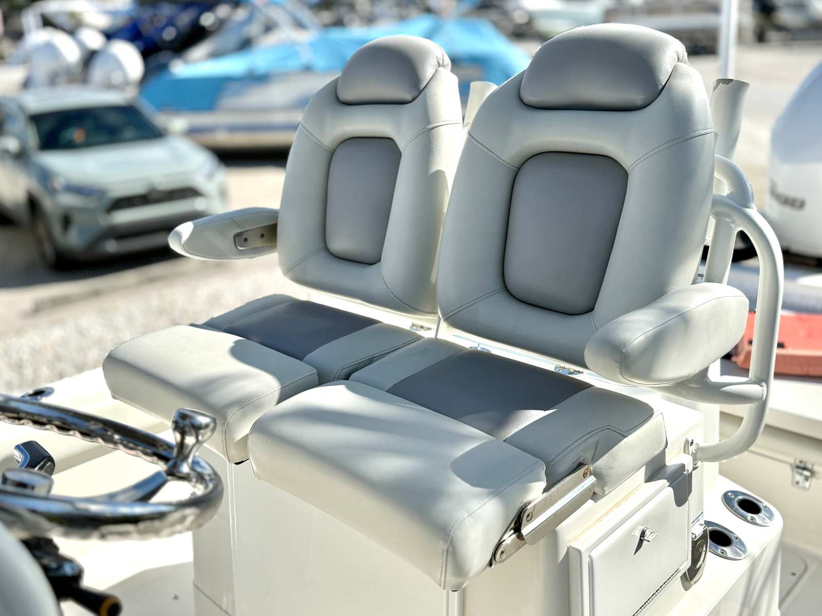Under the hood, the Ranger 2510 BAY is powered by a single 300-horsepower engine, delivering robust acceleration and smooth cruising. This setup provides the perfect blend of speed and efficiency, allowing you to reach your favorite fishing spots quickly or enjoy a thrilling ride across open water. The 300 HP engine ensures that this Ranger boat for sale is not just about looks—it’s built for action. Whether you are navigating choppy waves or gliding through calm inlets, the Ranger 2510 BAY offers responsive handling and reliable performance, giving you the confidence to explore new horizons.