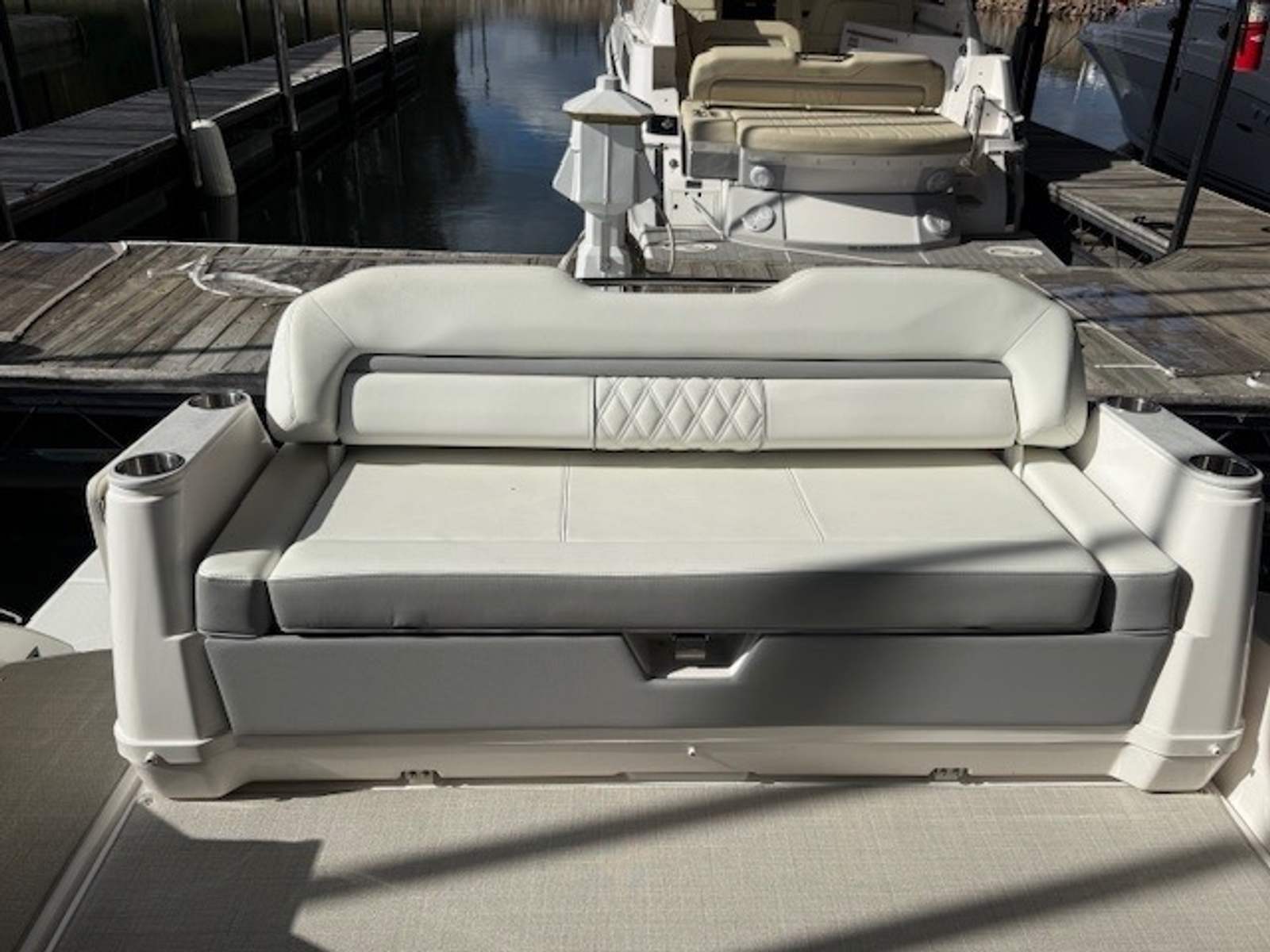Twin Volvo V8 350 DP engines deliver smooth handling, strong acceleration, and confident maneuverability—perfect for both cruising open waters and docking in tight spaces. With only 126 engine hours, you’ll enjoy reliable performance and peace of mind for seasons to come.