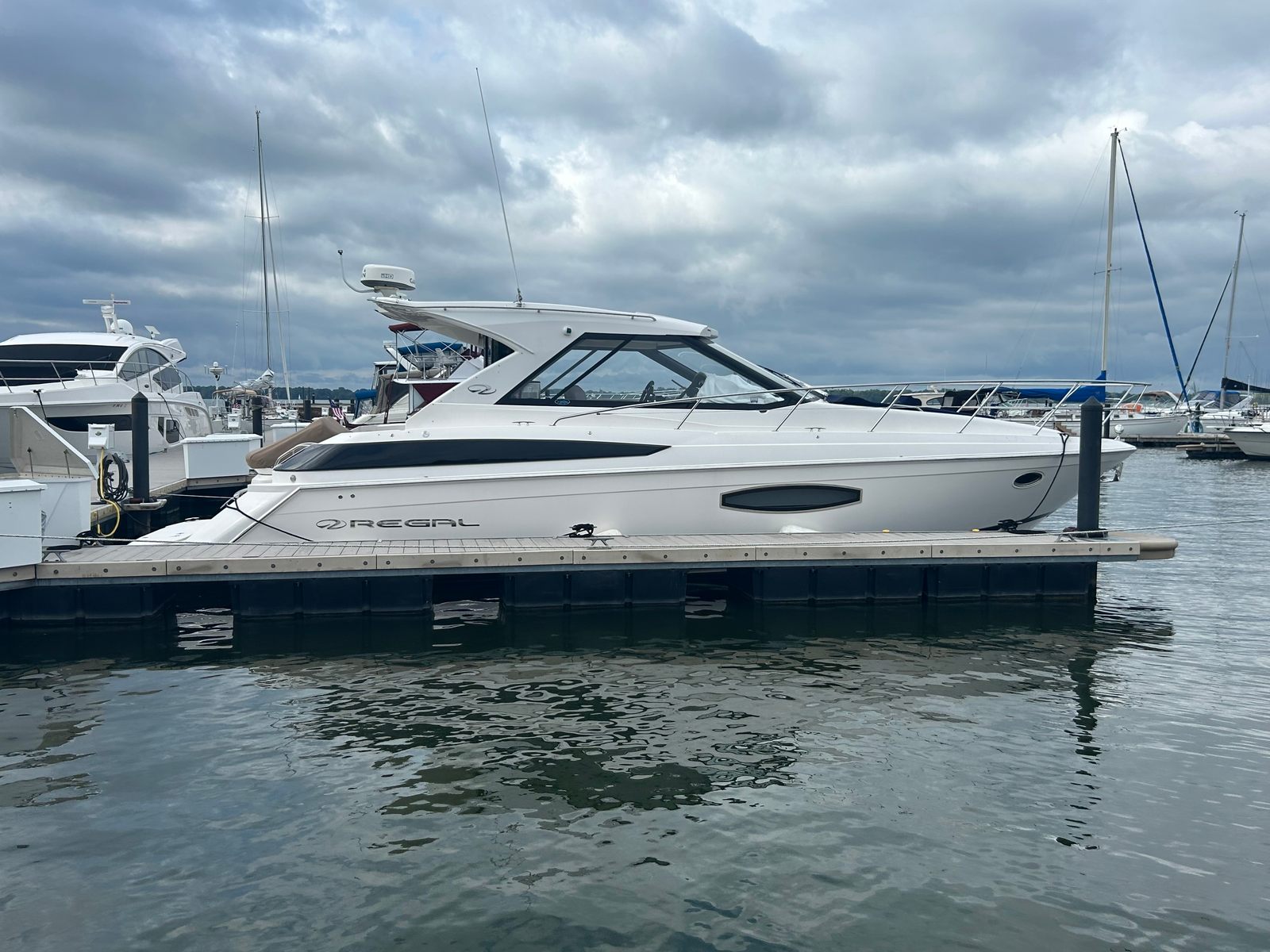 The 2016 Regal 42 Sport Coupe measures just under 42 feet in length, providing ample space for relaxation, entertainment, and adventure. With its sleek lines and modern profile, this yacht commands attention at every marina and on every waterway. The used condition of this Regal yacht ensures you get premium quality and craftsmanship at a more accessible price point, making it a smart investment for those seeking a luxury yacht boat for sale.