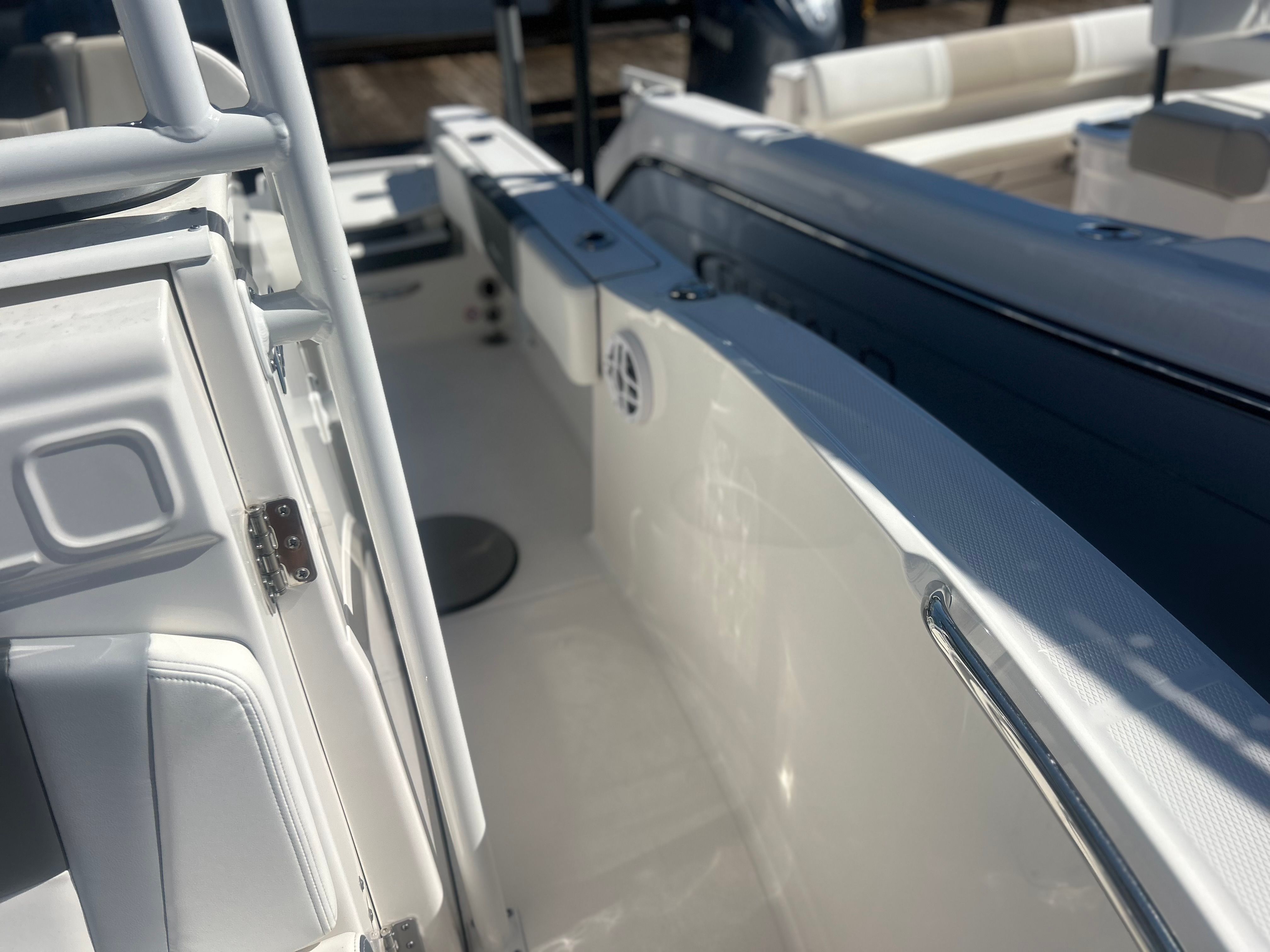 The 2024 Robalo 180 CC Center Console is designed with the needs of modern boaters in mind. Its Center Console layout maximizes deck space, allowing for easy movement around the boat and unobstructed access to all areas. The helm is ergonomically arranged, providing clear sightlines and intuitive controls for a confident boating experience. The boat’s 18-foot length makes it easy to handle, dock, and store, while still offering ample room for passengers and gear. The used condition of this Robalo boat for sale means you can enjoy premium features at a more accessible price point, making it a smart investment for those seeking quality and value.