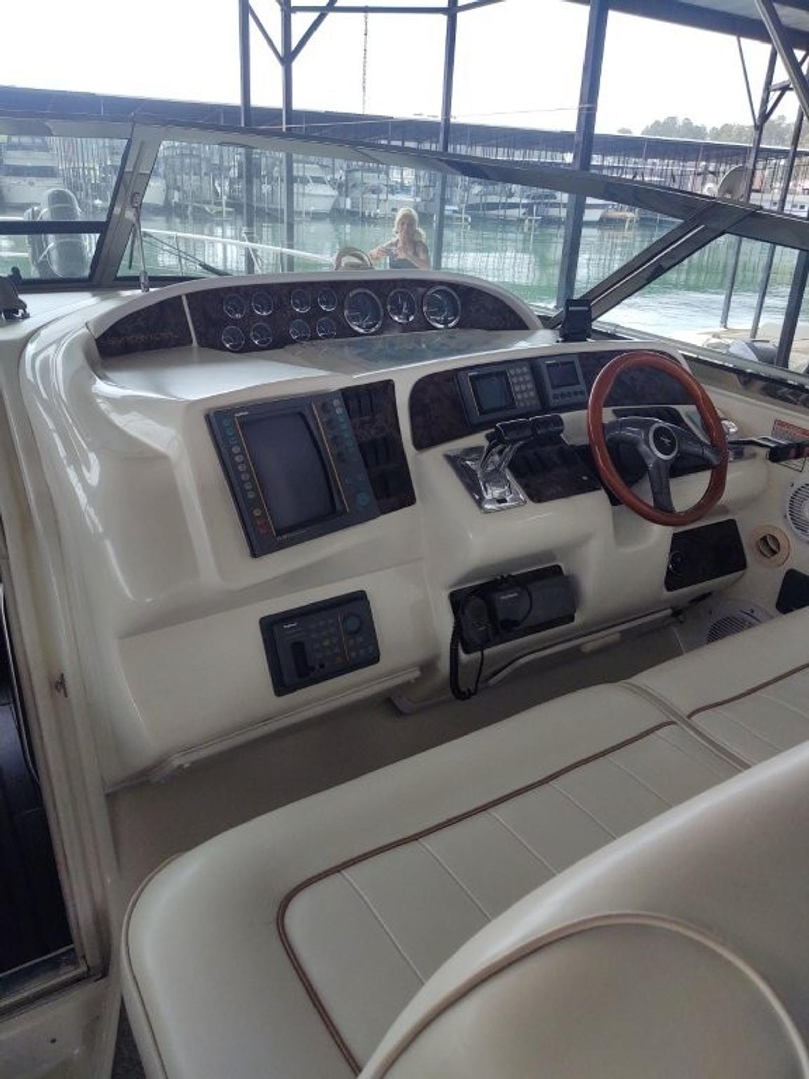 The 1998 and 1999 versions of the 370 Sundancer are especially desirable thanks to the redesigned taller radar arch that adds more cockpit headroom. With its spacious interior, proven Sea Ray build quality, and comfortable cruising layout, this Sundancer is a great option for anyone looking for a well-kept express cruiser ready to enjoy on the water.
