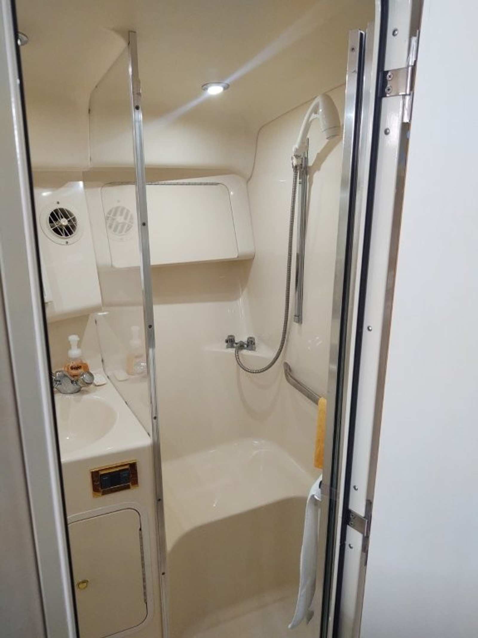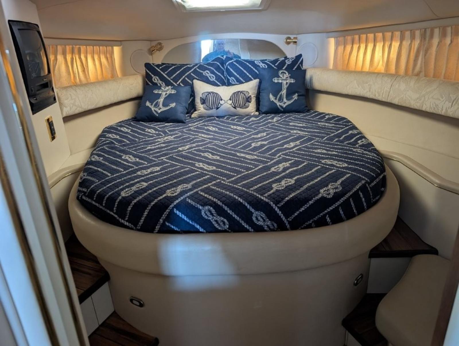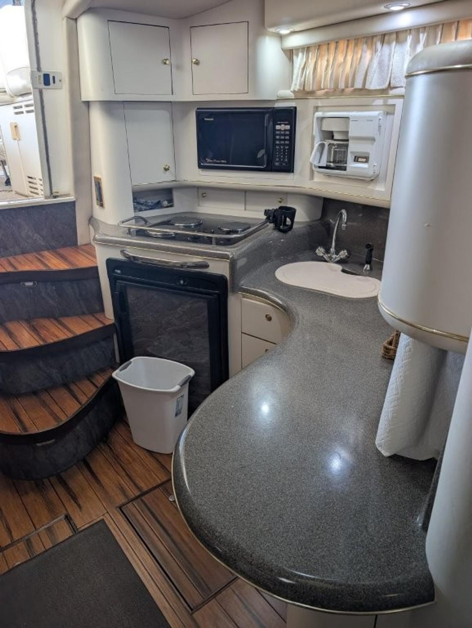 Inside the cabin, the upgraded hardwood bamboo flooring gives the interior a clean, updated look while remaining durable and easy to maintain. The Sundancer layout provides a roomy salon, full galley, forward berth, and private mid-cabin sleeping area, making it easy to host family or guests overnight. Large windows and an open design help keep the cabin bright and comfortable.