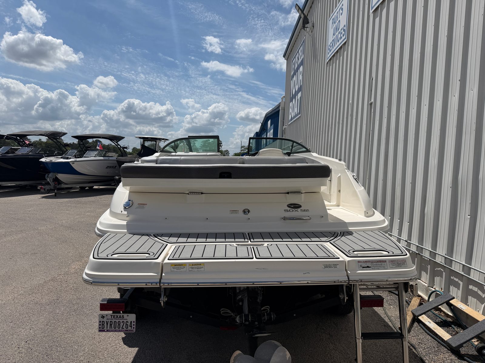 This Sea Ray boat for sale comes loaded with special features designed to enhance your boating experience. The Bimini top provides shade and protection from the sun, allowing you to stay comfortable during long days on the water. The Bluetooth stereo system lets you set the perfect soundtrack for your adventures, whether you’re relaxing or celebrating with friends. A cover helps protect your investment when the boat is not in use, keeping it looking its best season after season. The tandem axle trailer with swing tongue makes transportation and storage a breeze, offering flexibility and convenience for owners who want to explore new waterways. Dual prop technology improves handling and efficiency, while annual service ensures the boat is always ready for action.