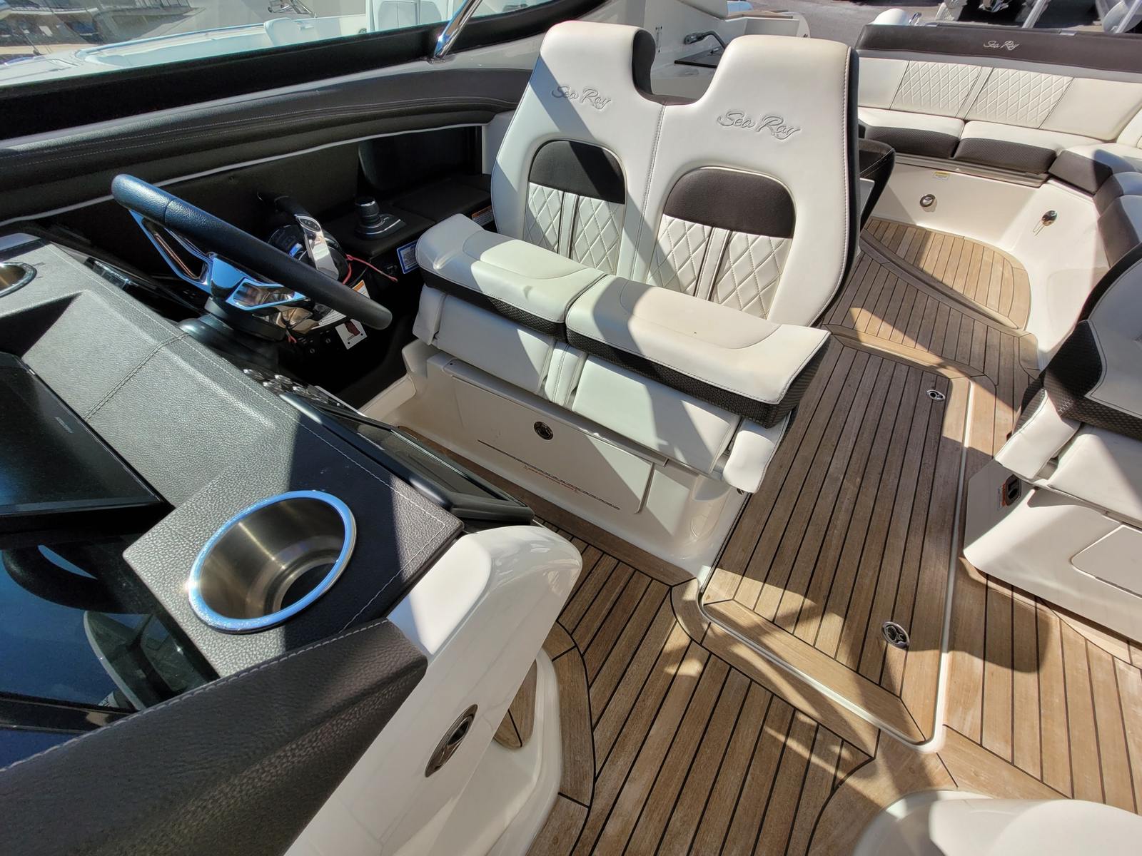 The Sea Ray SLX 350 is as practical as it is stylish. Its thoughtful design includes plenty of storage compartments for all your boating essentials, from water toys to picnic supplies. The dual engines make docking and maneuvering simple, even in tight spaces, while the boat’s efficient performance helps you make the most of every gallon of fuel. Whether you are planning a weekend getaway or a quick afternoon escape, the SLX 350 is equipped to handle all your needs with ease.