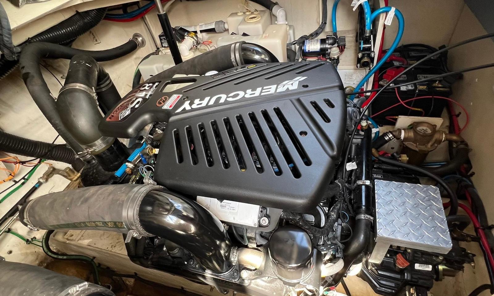 Powering the Sea Ray Sundancer 340 are twin engines, delivering a combined 740 horsepower. This robust engine setup ensures smooth acceleration, responsive handling, and the ability to cruise effortlessly at a variety of speeds. Whether you are navigating open waters or maneuvering into a marina, the Sundancer 340’s performance capabilities provide confidence and control. The twin-engine configuration also offers added reliability and peace of mind, making every journey enjoyable and worry-free.