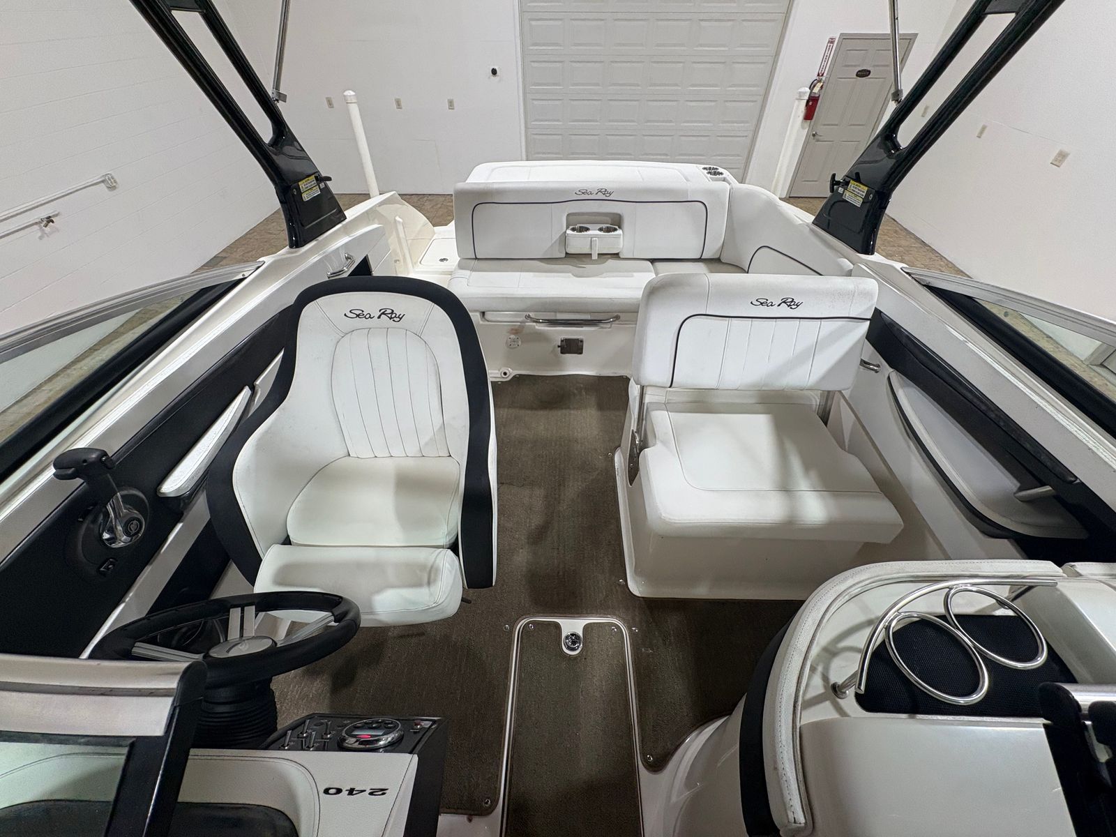 The Sea Ray Sundeck 240 is as practical as it is fun. Its manageable size makes docking and maneuvering a breeze, even for those new to boating. The efficient single-engine setup helps keep fuel costs in check, allowing you to spend more time on the water and less time at the pump. Ample storage compartments ensure that everything you need for a day on the water is within easy reach, from life jackets to picnic supplies. The boat’s thoughtful design also makes it easy to clean and maintain, so you can focus on enjoying your time afloat.