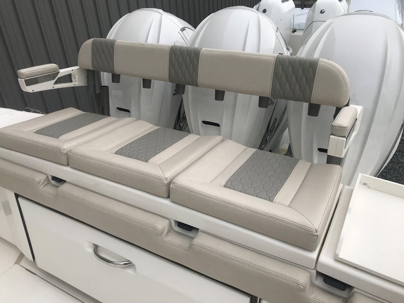 Powering the Solace 41 CS are three Yamaha V8 425 XTO outboard engines, delivering a combined 1275 horsepower. These triple engines, finished in Pearlescent White, offer exhilarating acceleration, smooth cruising, and reliable offshore capability. With the advanced Helm Master system, you’ll enjoy precise control and effortless maneuvering, whether docking in tight spaces or navigating open waters. The low engine hours further ensure that these engines are ready to provide years of dependable performance, making this Center Console boat for sale a smart investment for serious boaters.